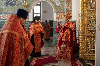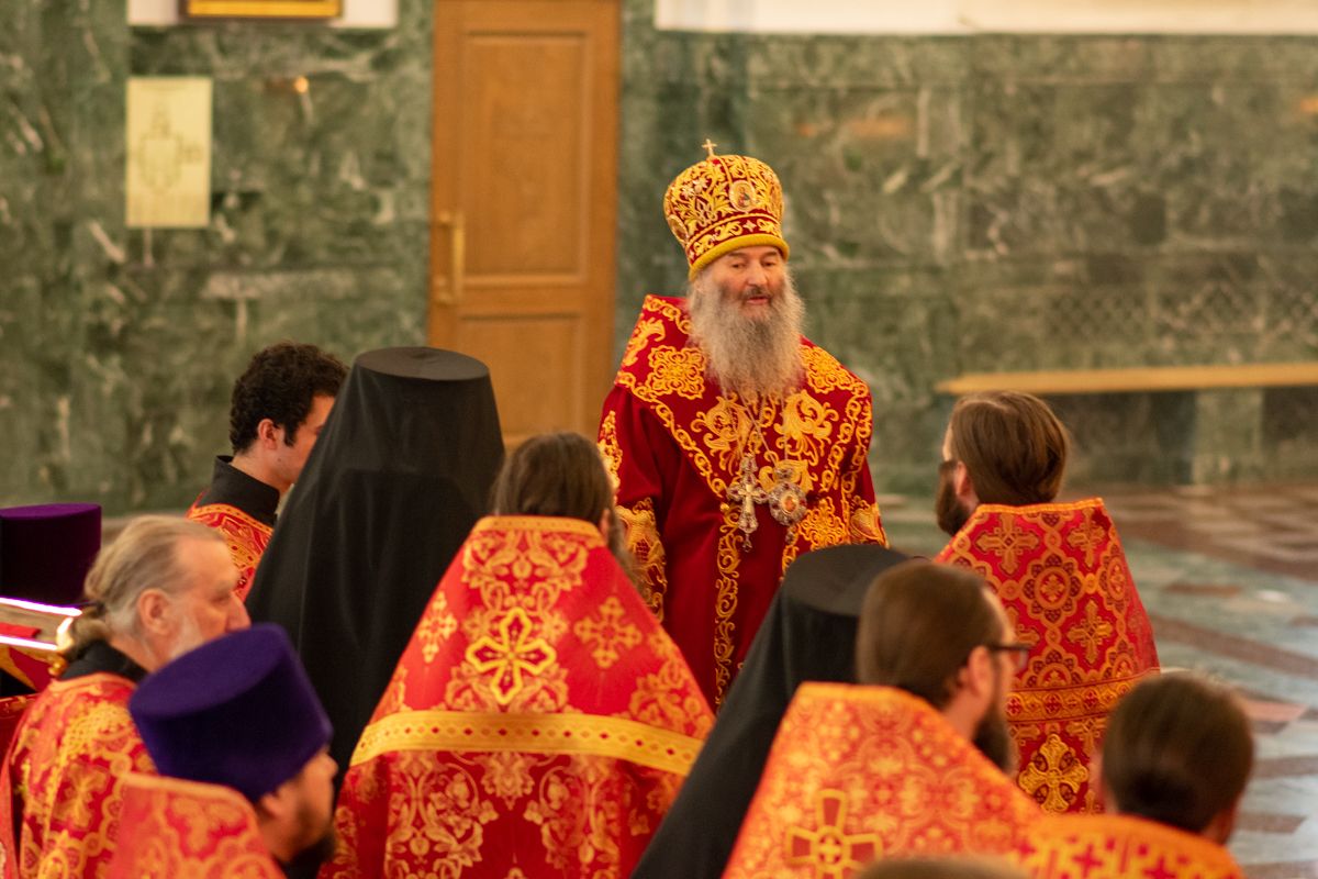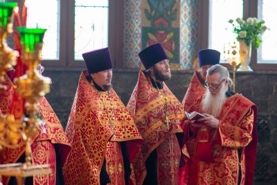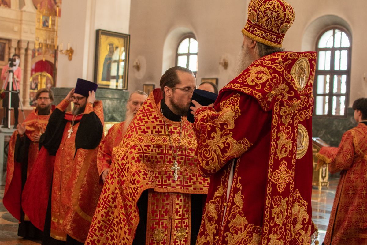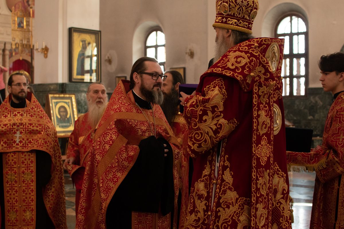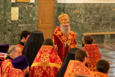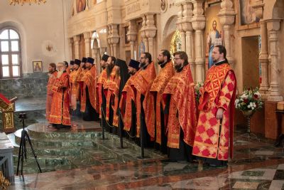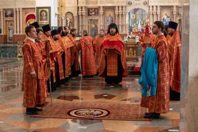 Владыке сослужили секретарь Йошкар-Олинского епархиального управления иеромонах Серафим (Пасанаев), ключарь собора протоиерей Сергий Поглазов, клирики собора иереи Никифор Захаров, Артемий Промович, Евгений Самойлов, диаконы Андрей Дружинин, Игорь Коваль, настоятель храма Иверской иконы Божией Матери г. Йошкар-Ола иерей Михаил Горицкий, старший священник Богородице-Сергиевого монастыря священноинок Паисий (Киселев), клирики храма Рождества Пресвятой Богородицы с. Семеновка иереи Сергий Асланов, Григорий Михалев, протодиакон Михаил Козловский, клирики храма Рождества Христова г. Йошкар-Ола иереи Никита Смирнов, Димитрий Дьяков, настоятель Воскресенского собора г. Йошкар-Олы иерей Алексей Кирюшкин и клирик собора иерей Андрей Кочаков.