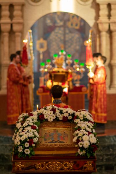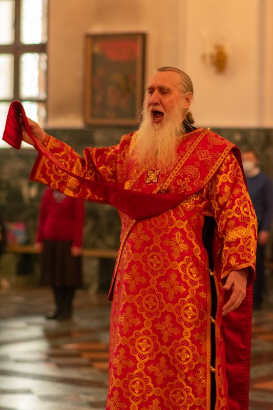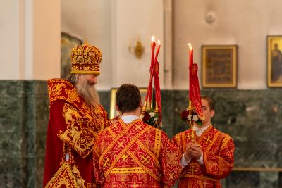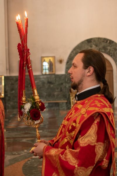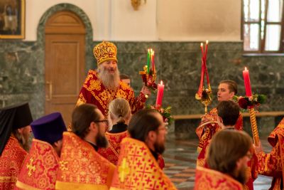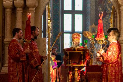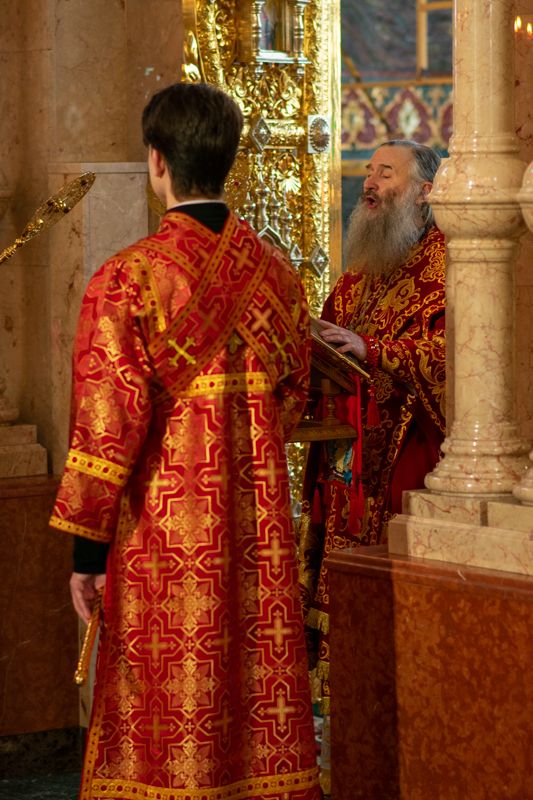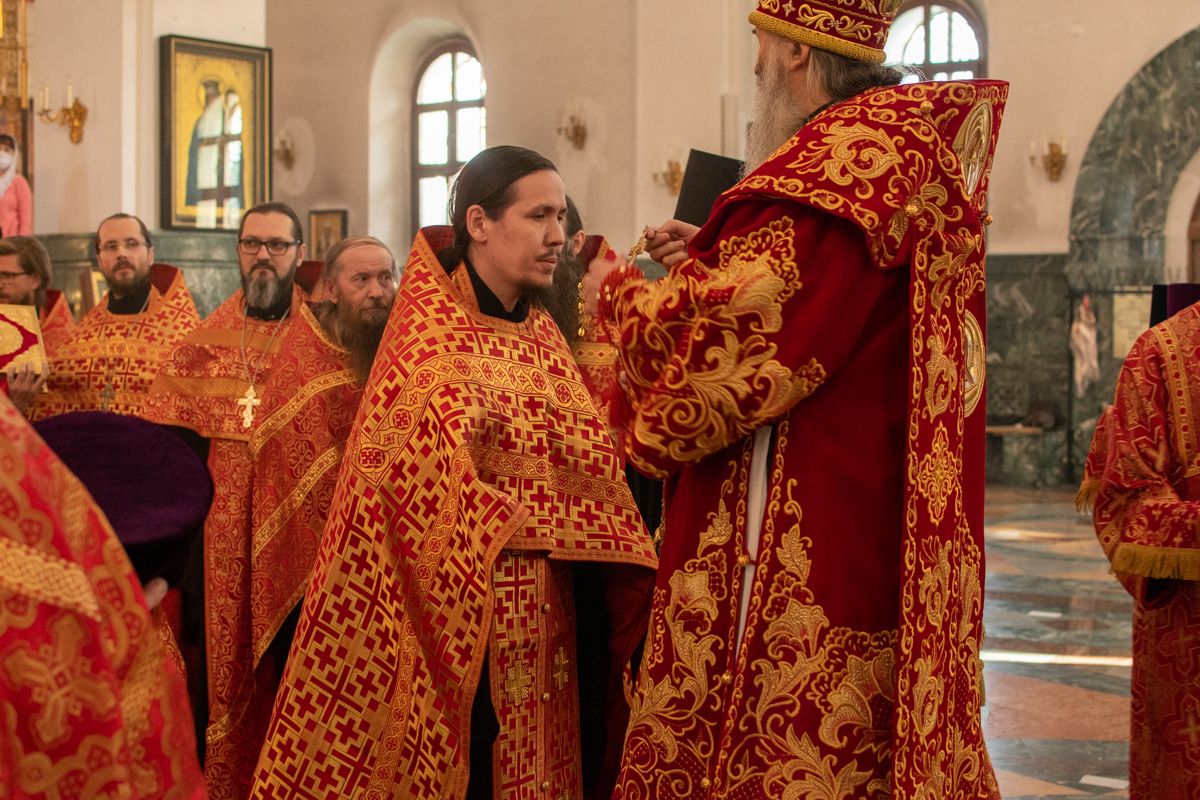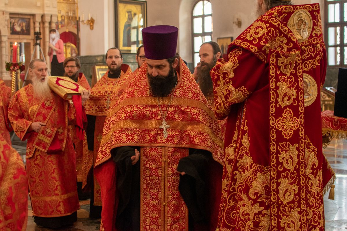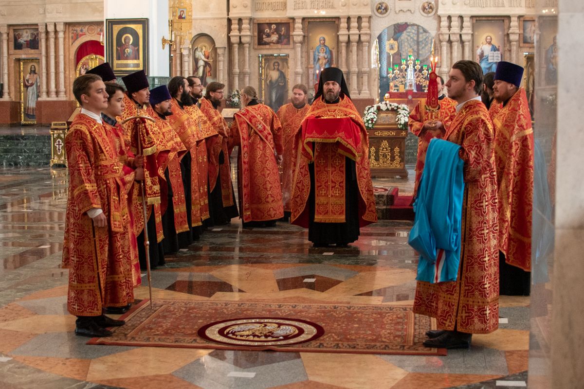 Владыке сослужили секретарь Йошкар-Олинского епархиального управления иеромонах Серафим (Пасанаев), ключарь собора протоиерей Сергий Поглазов, клирики собора иереи Никифор Захаров, Артемий Промович, Евгений Самойлов, диаконы Андрей Дружинин, Игорь Коваль, настоятель храма Иверской иконы Божией Матери г. Йошкар-Ола иерей Михаил Горицкий, старший священник Богородице-Сергиевого монастыря священноинок Паисий (Киселев), клирики храма Рождества Пресвятой Богородицы с. Семеновка иереи Сергий Асланов, Григорий Михалев, протодиакон Михаил Козловский, клирики храма Рождества Христова г. Йошкар-Ола иереи Никита Смирнов, Димитрий Дьяков, настоятель Воскресенского собора г. Йошкар-Олы иерей Алексей Кирюшкин и клирик собора иерей Андрей Кочаков.