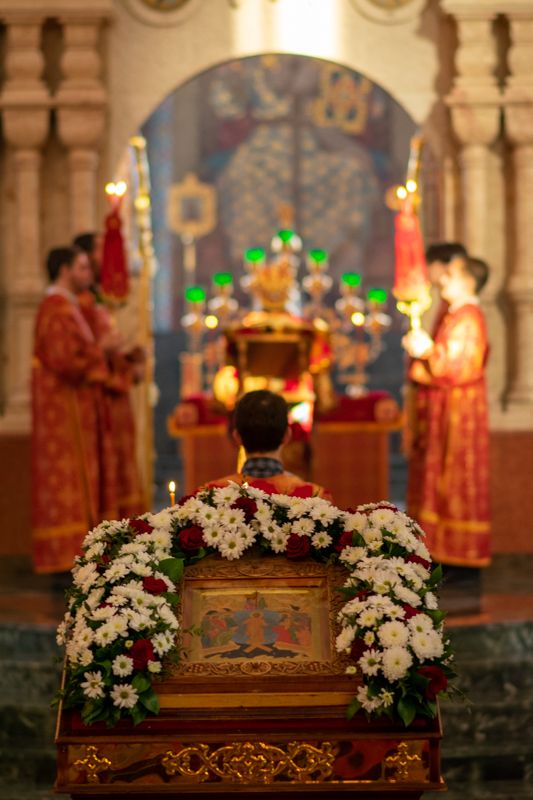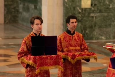 Песнопения исполнял хор под руководством регента Татьяны Черновой. На официальной странице «Православие в Марий Эл» в социальной сети ВКонтакте велась прямая трансляция богослужения.