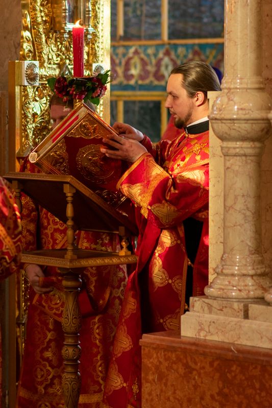 После входа читался Евангельский отрывок о явлении Воскресшего Иисуса Христа апостолам в отсутствии Фомы.