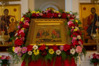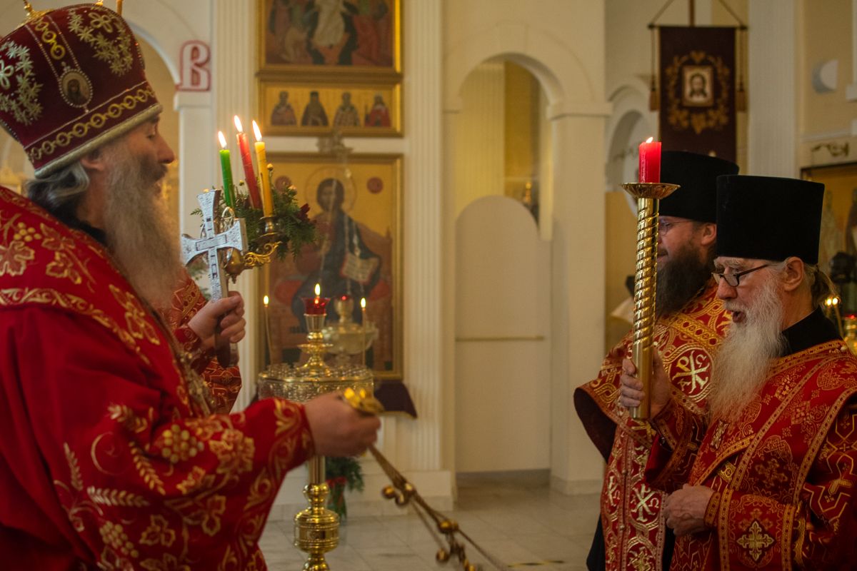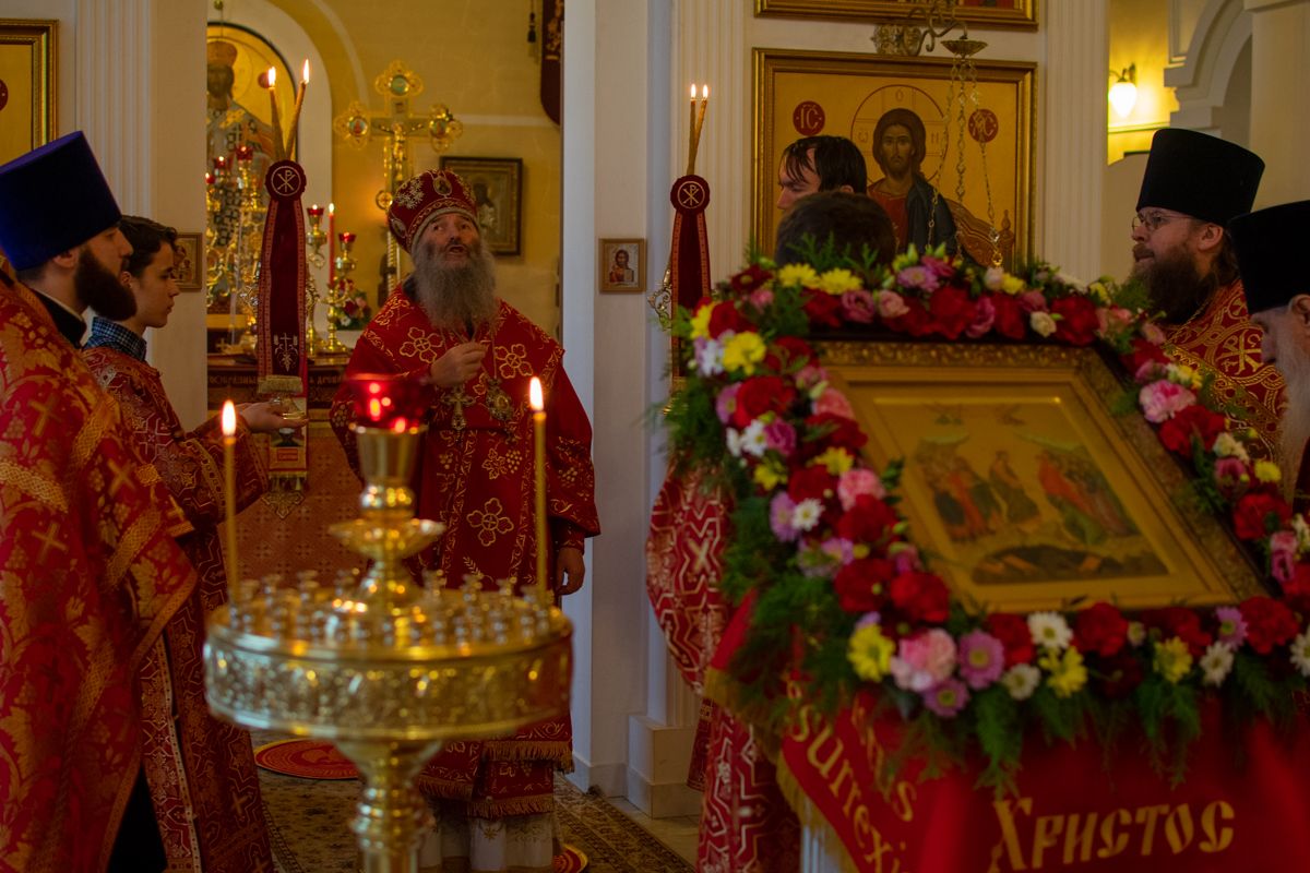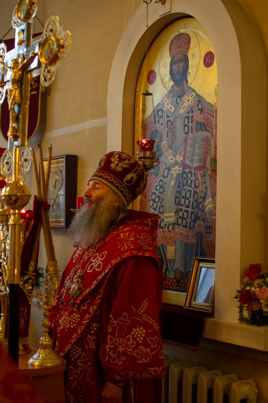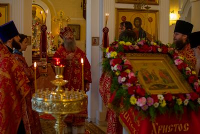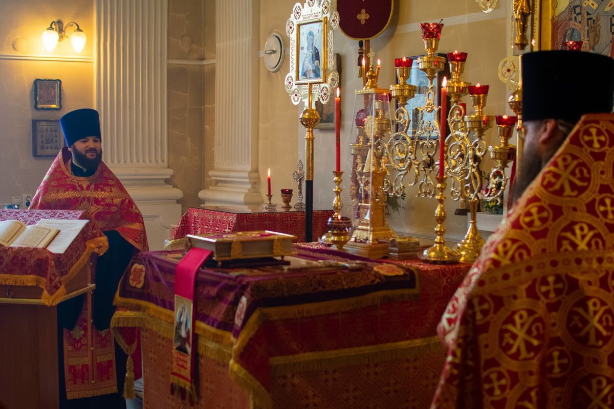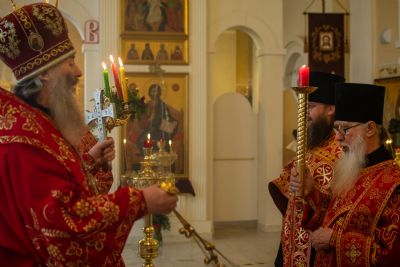 Его Высокопреосвященству сослужили настоятель храма протоиерей Евгений Сурков, клирик храма иерей Андрей Иванов и клирик храма Рождества Пресвятой Богородицы с. Семеновка протодиакон Михаил Козловский. Песнопения исполняли хор храма под управлением регента Екатерины Григорьевой.