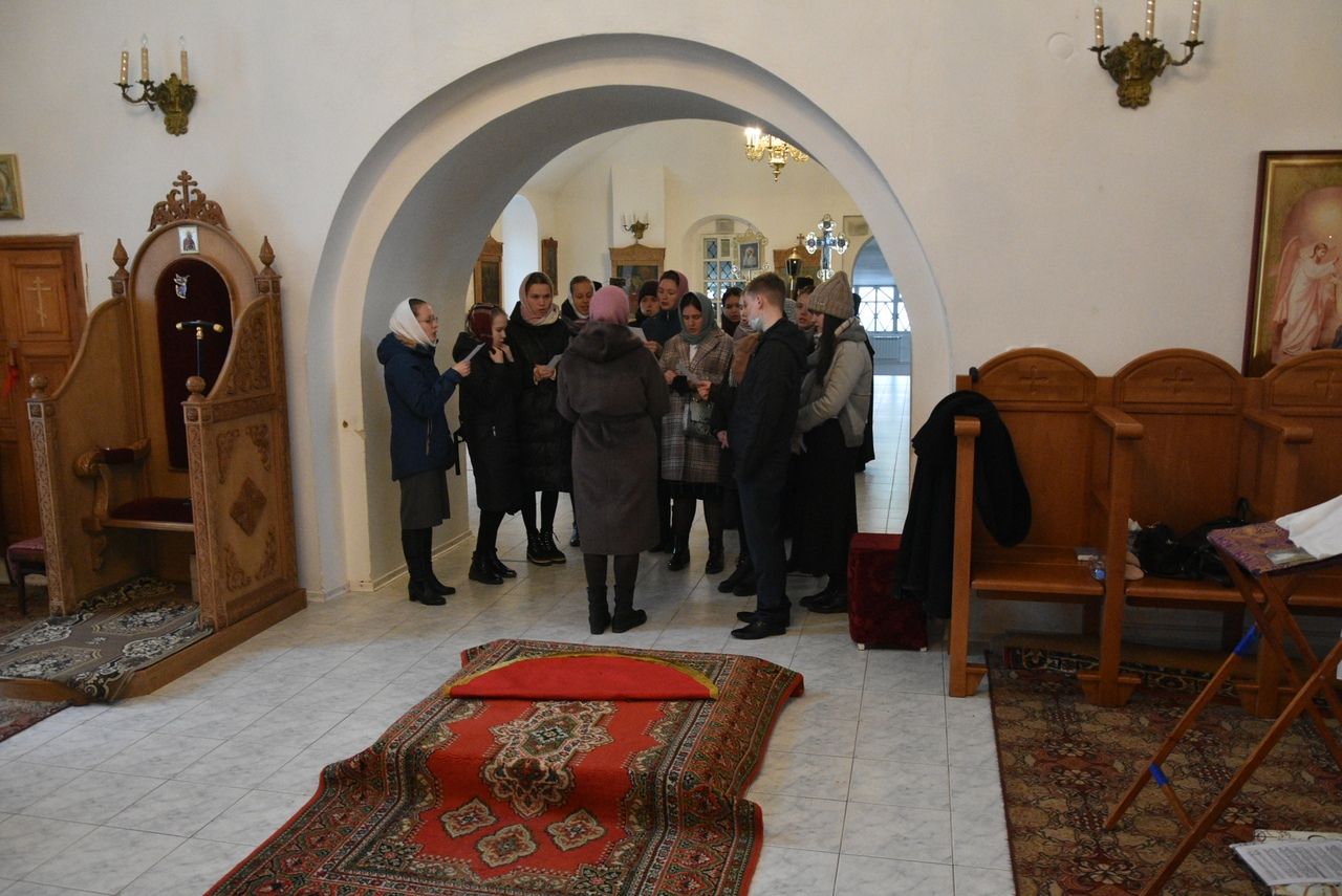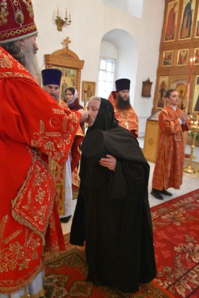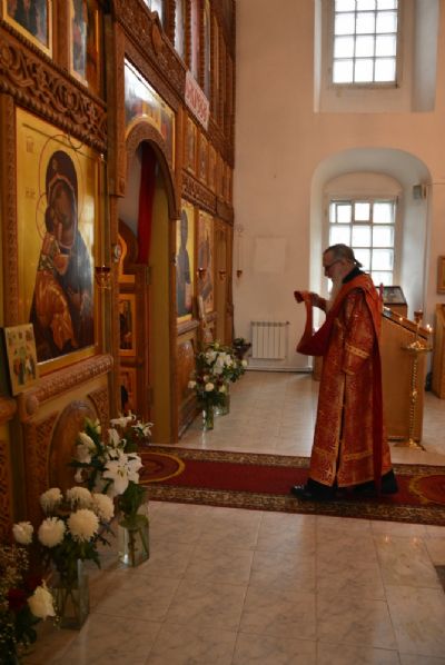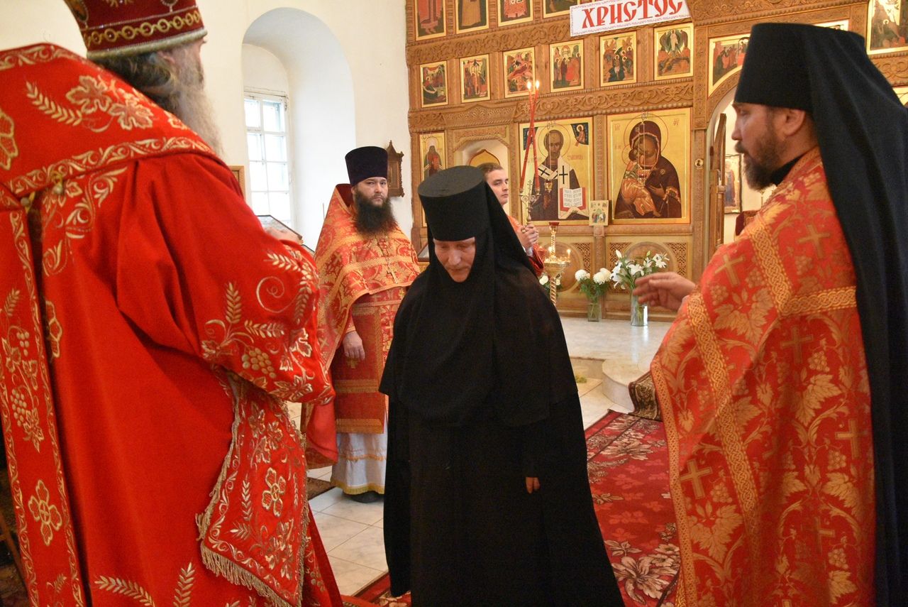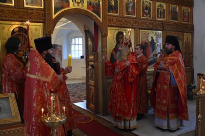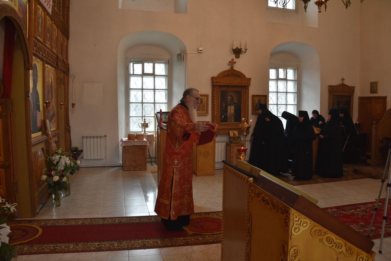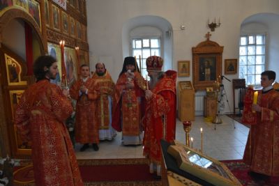 Владыке сослужили секретарь Йошкар-Олинского епархиального управления иеромонах Серафим (Пасанаев), клирик монастыря иерей Михаил Лежнин, настоятель храма Всех святых в земле Российской просиявших п. Советский протоиерей Николай Ярошевич, настоятель храма Сретения Господня с. Кучки протоиерей Алексей Вязов и клирик храма Рождества Пресвятой Богородицы с. Семеновка протодиакон Михаил Козловский.