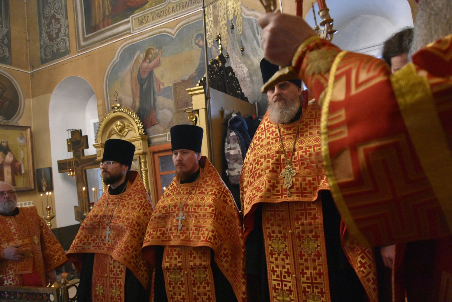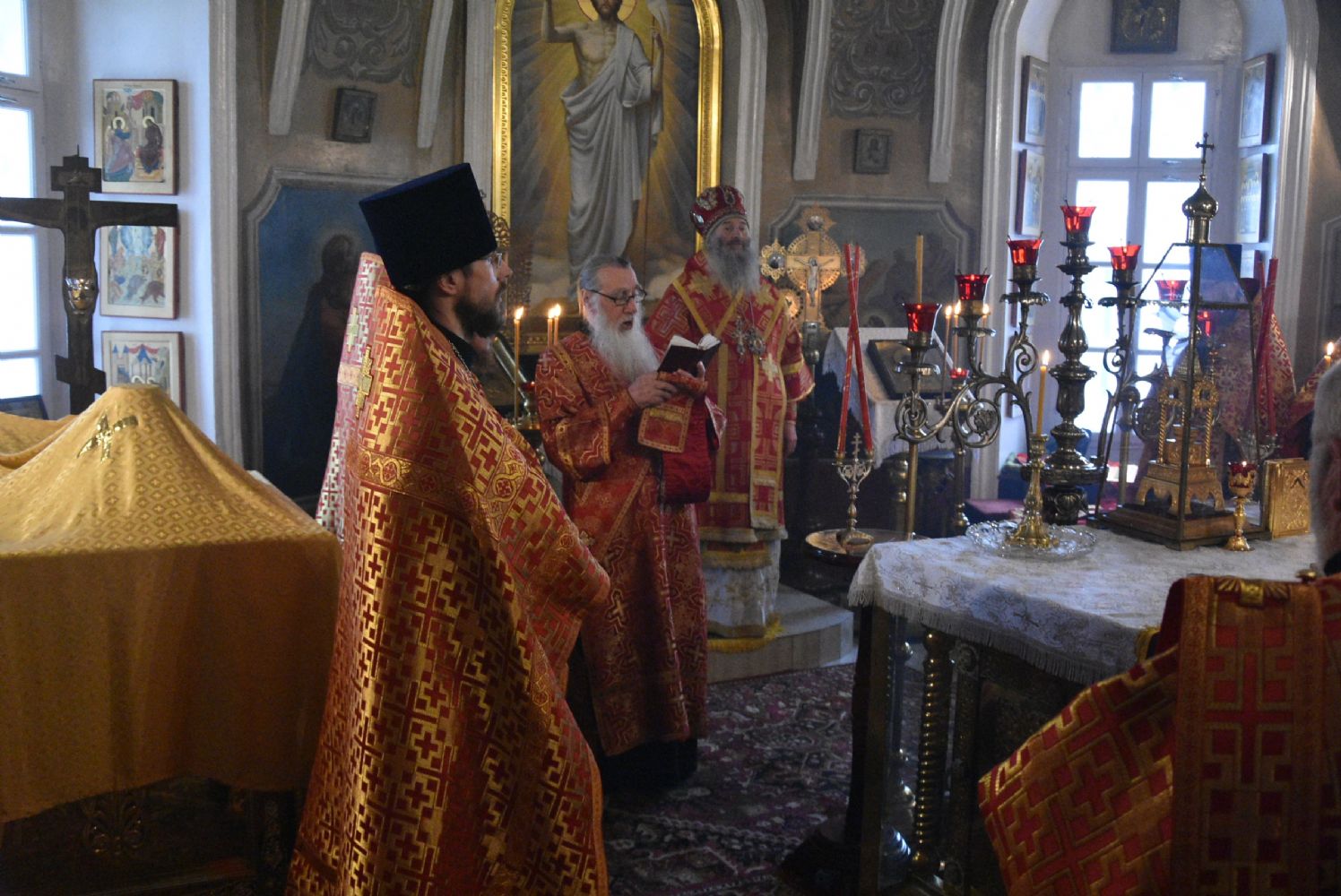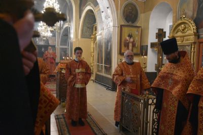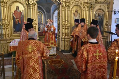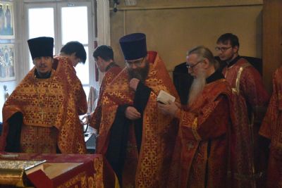 Архипастырю сослужили секретарь Йошкар-Олинского епархиального управления иеромонах Серафим (Пасанаев), ключарь храма протоиерей Михаил Ильин, клирики храма протоиерей Павел Матвеев, иереи Сергий Асланов, Димитрий Иванов, Павел Дурандин, Григорий Михалев, протодиакон Михаил Козловский, диаконы Владимир Головин и Димитрий Смирнов. Песнопения исполнял хор храма.