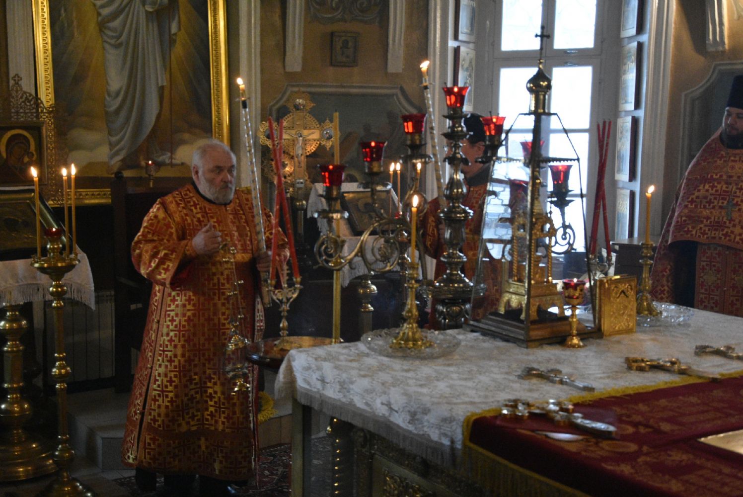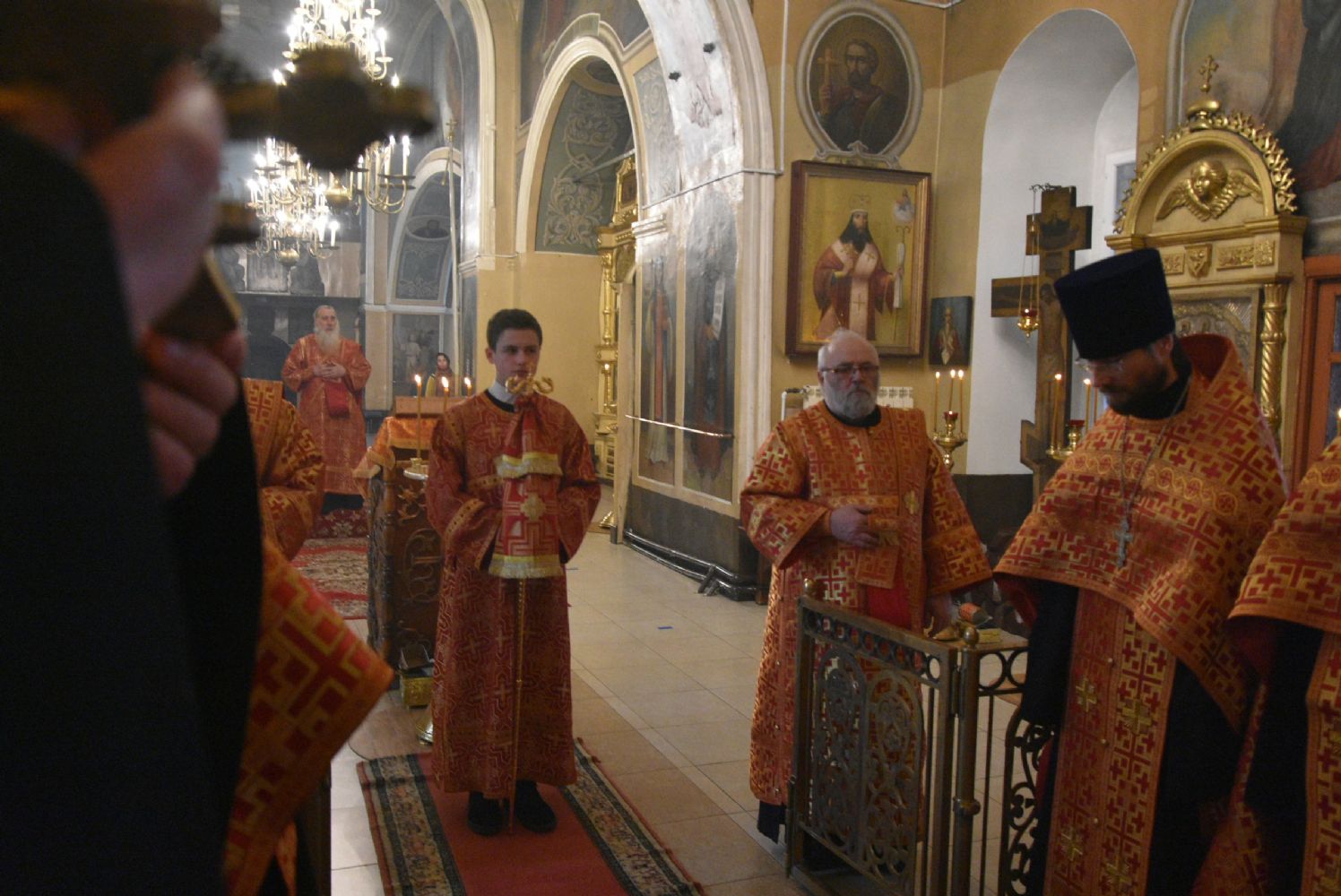 Богослужение началось торжественной встречей митрополита Иоанна и облачением в центре храма.