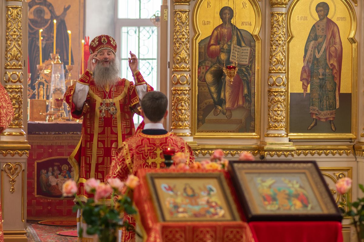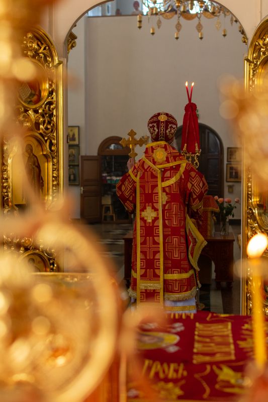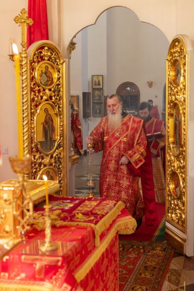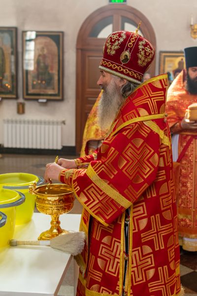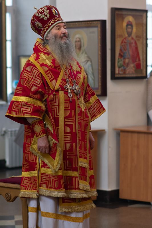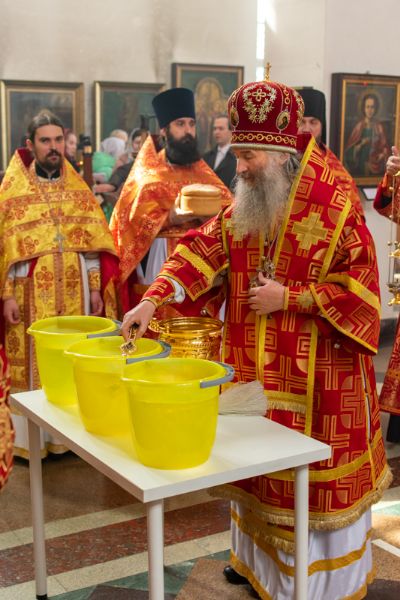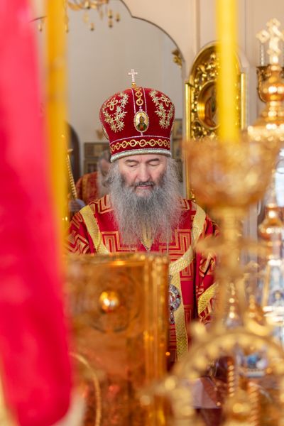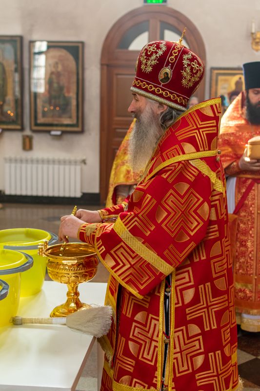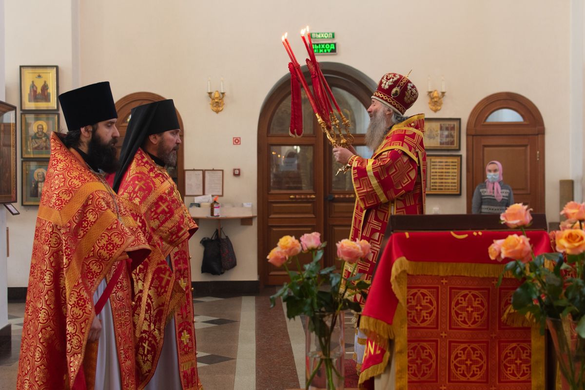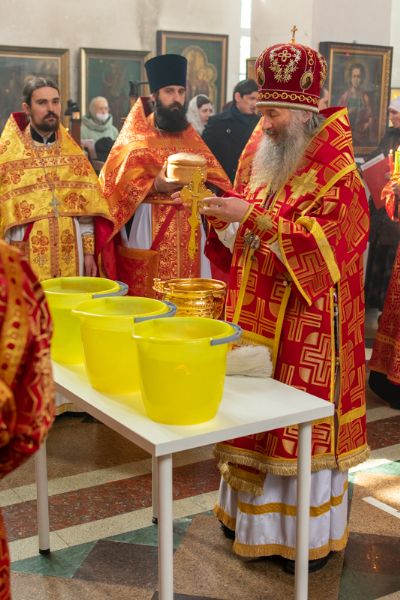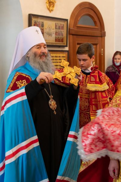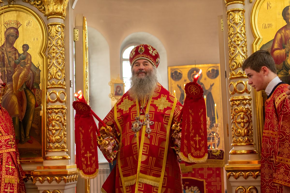 Богослужение началось торжественной встречей Владыки и облачением в центре храма. За Литургией возносились особые прошения о единении Православной Церкви, мире в Украине и прекращении вредоносного поветрия.