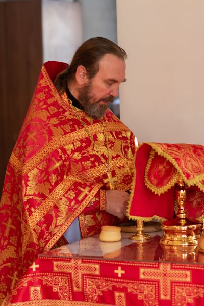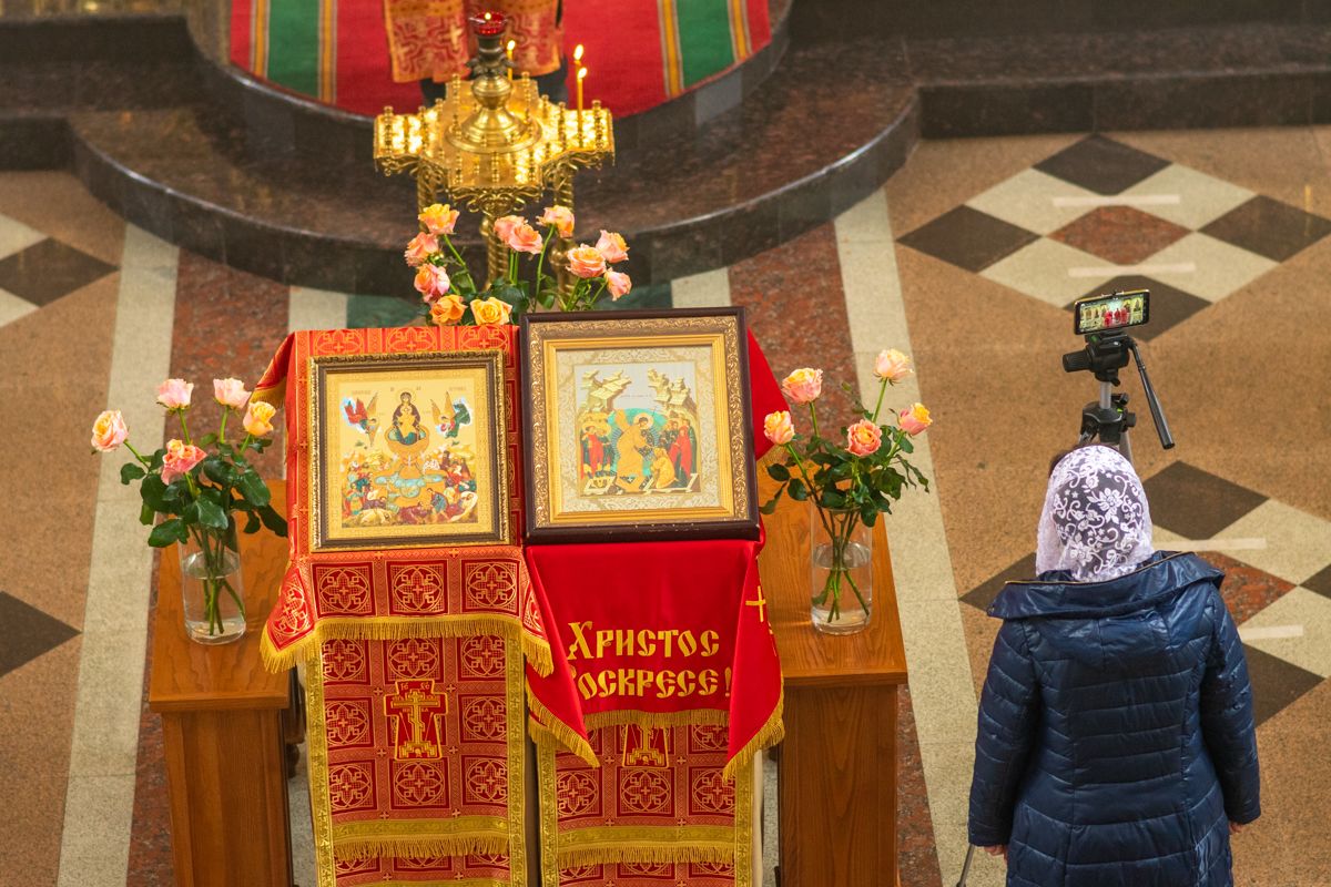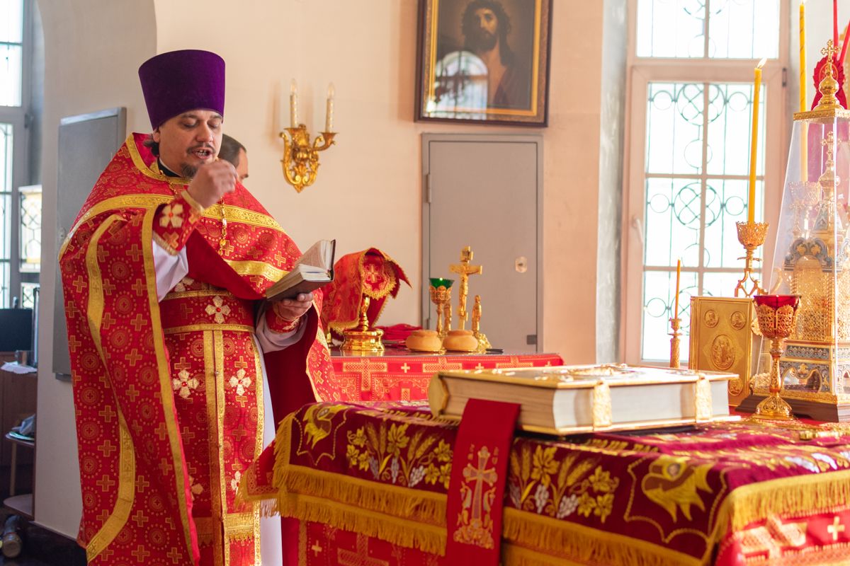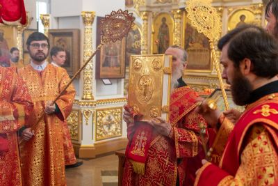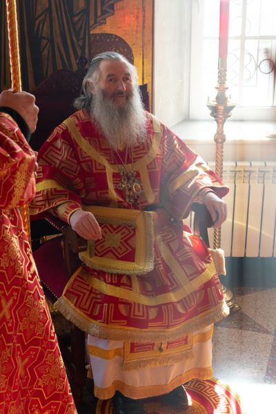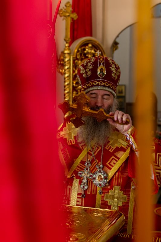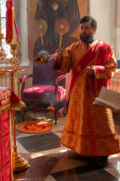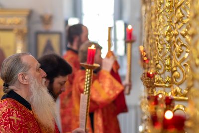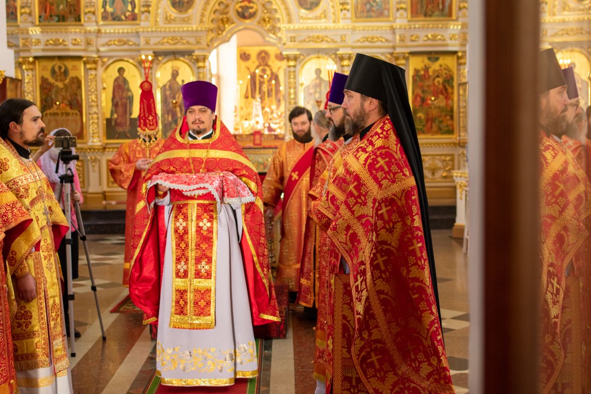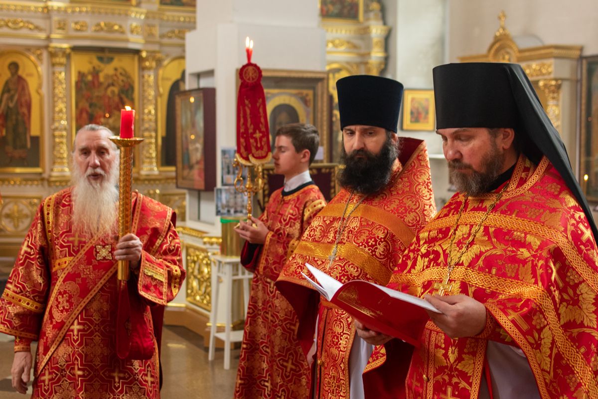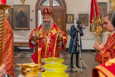 Богослужение началось торжественной встречей Владыки и облачением в центре храма. За Литургией возносились особые прошения о единении Православной Церкви, мире в Украине и прекращении вредоносного поветрия.
