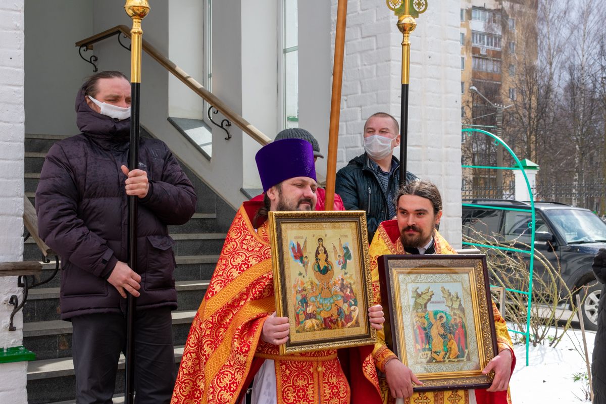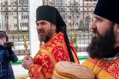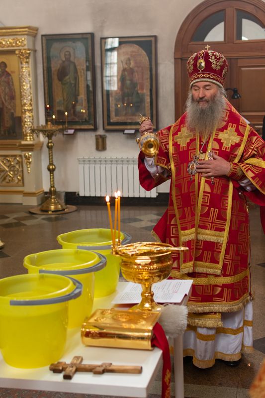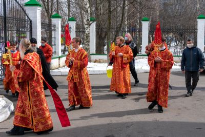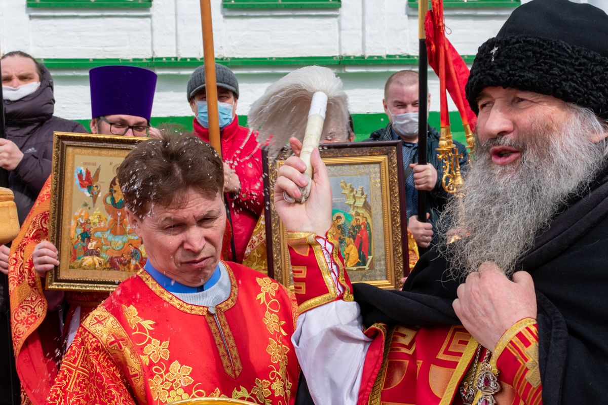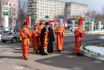 По окончании Литургии был совершен чин малого освящения воды и крестный ход вокруг храма с кроплением святой водой.