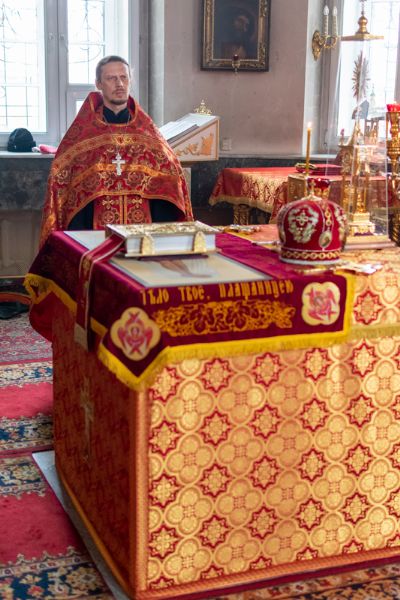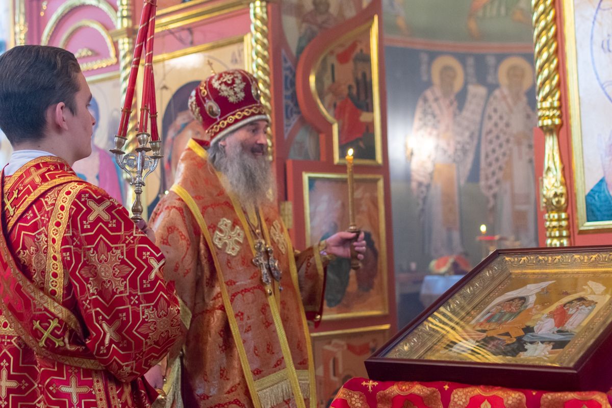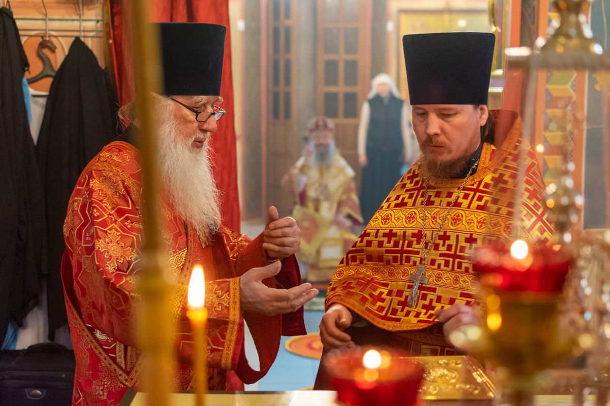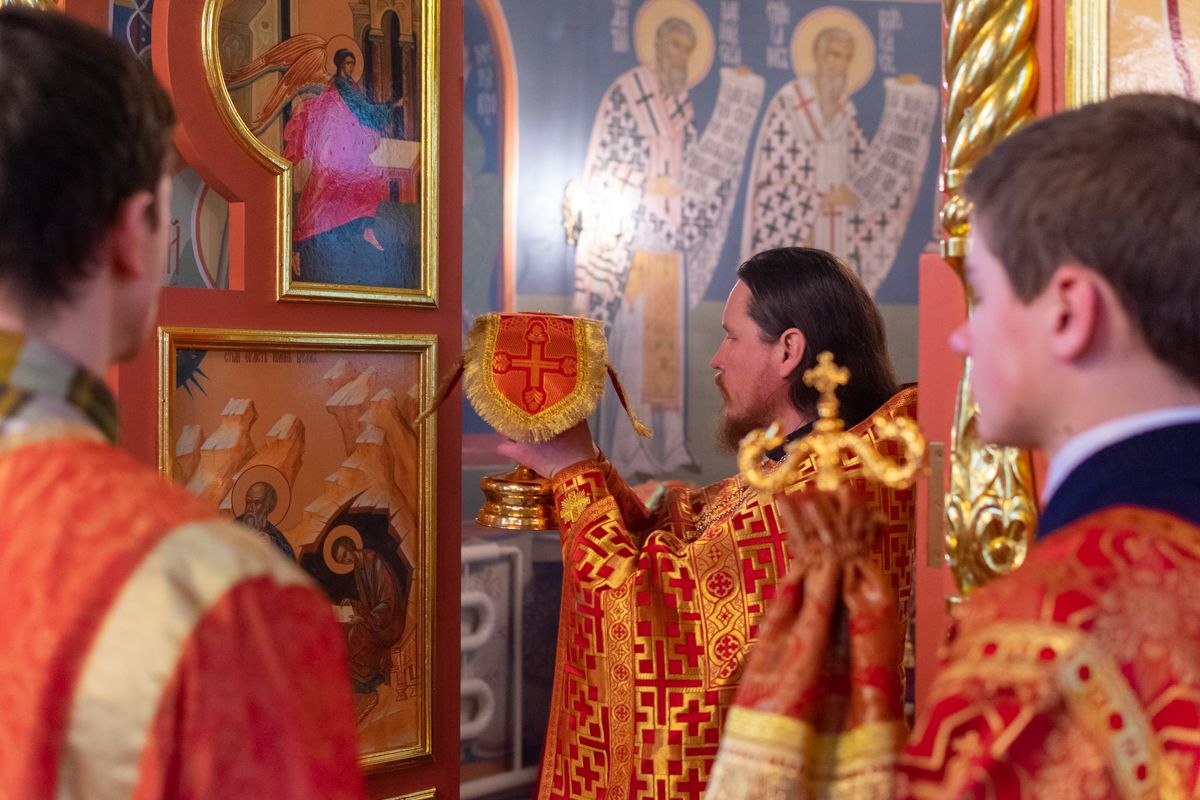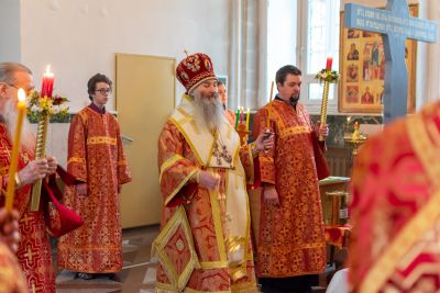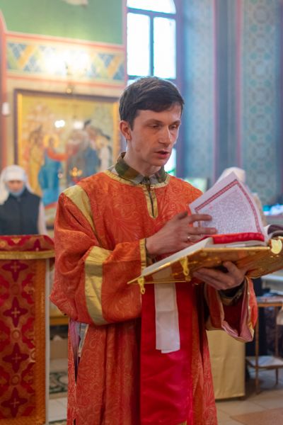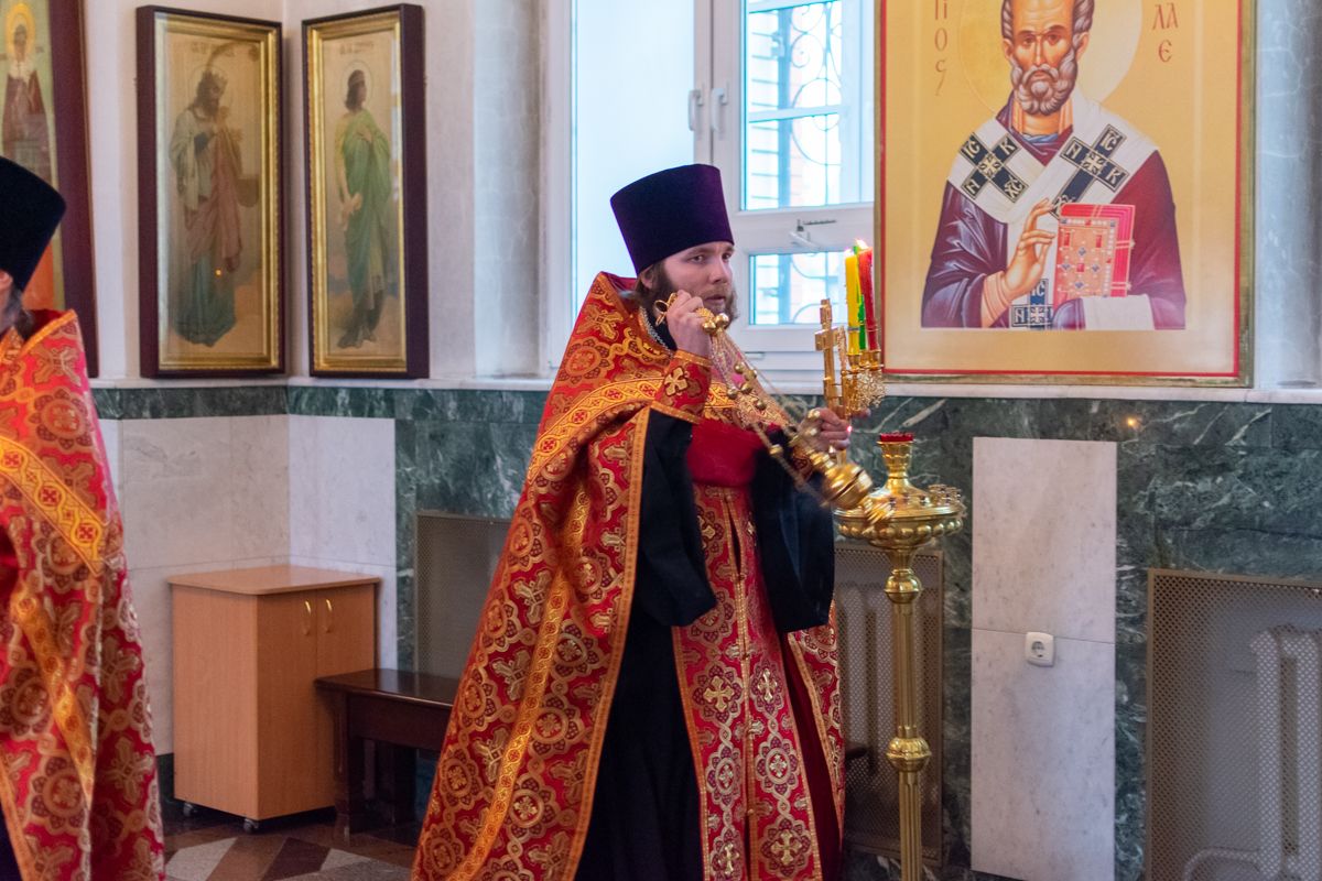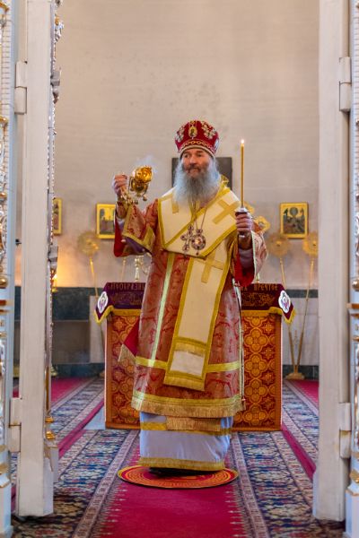 Владыке сослужили настоятель храма иерей Алексий Кирюшкин, клирики храма иереи Леонид Вылекжанин, Андрей Кочаков, диакон Алексей Кузнецов и клирик храма Рождества Пресвятой Богородицы с. Семеновка протодиакон Михаил Козловский. Песнопения исполнял хор собора.