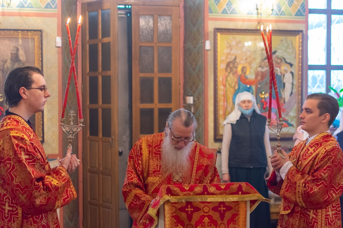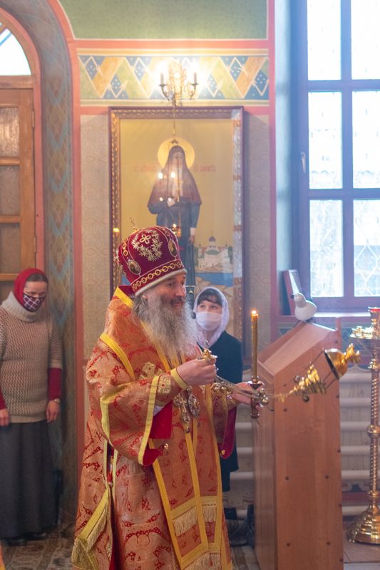 Архипастырю сослужили клирики храма Рождества Пресвятой Богородицы с. Семеновка иерей Димитрий Иванов и протодиакон Михаил Козловский. Богослужебные песнопения исполнял хор сестер милосердия. В социальной сети ВКонтакте на официальной странице «Православие в Марий Эл» велась прямая трансляция богослужения.