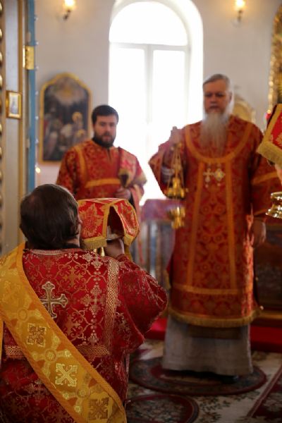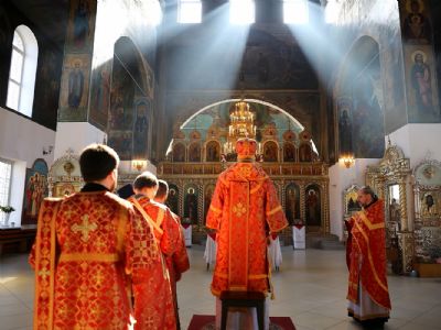 Его Преосвященству сослужило духовенство собора. Пел хор под управлением Любови Михеевой.