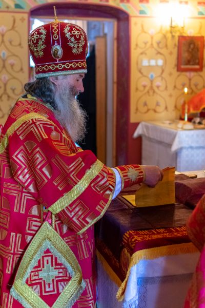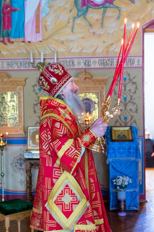 В этот день митрополит Йошкар-Олинский и Марийский Иоанн возглавил Божественную литургию в домовом храме Йошкар-Олинского епархиального управления иконы Божией Матери «Троеручица».