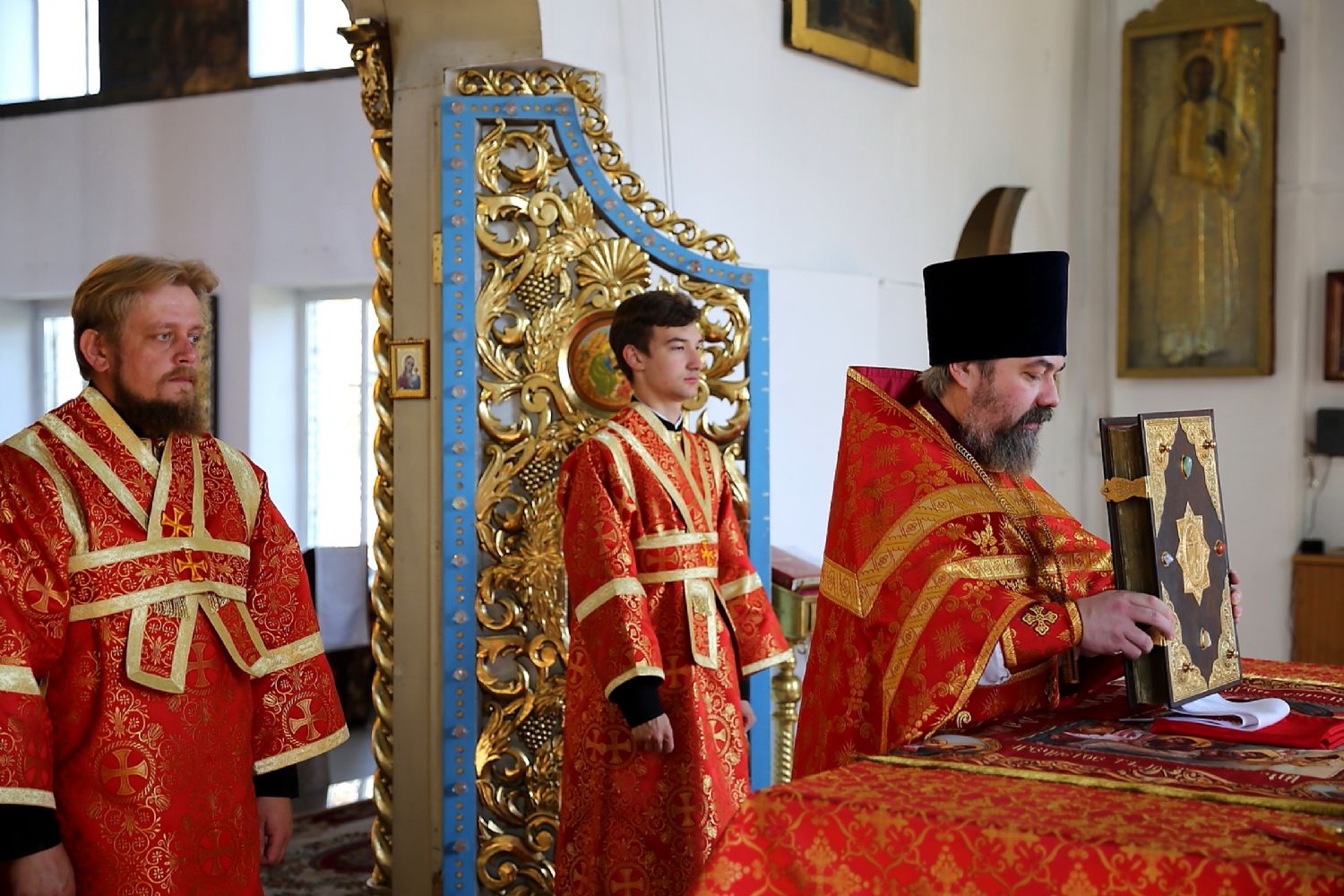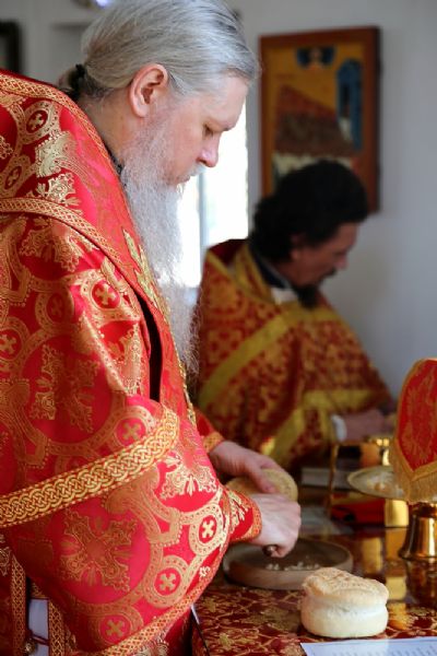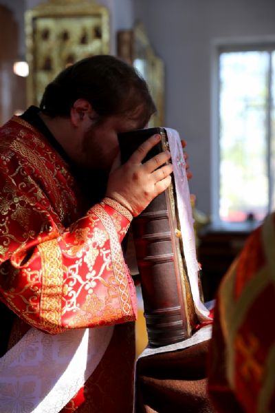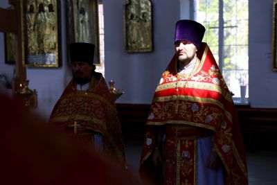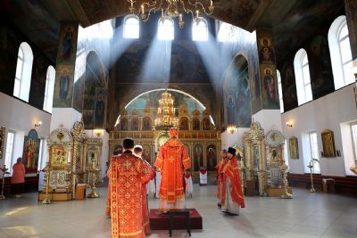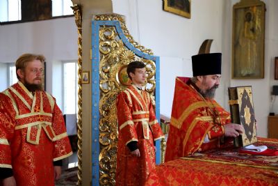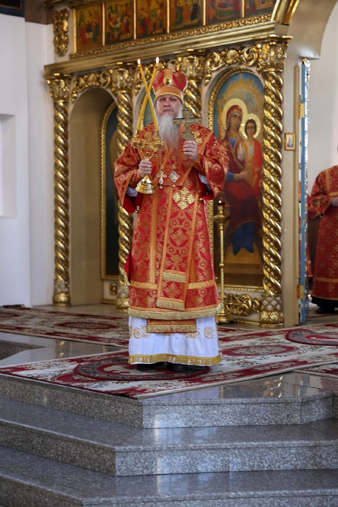 Его Преосвященству сослужило духовенство собора. Богослужебные песнопения исполнял хор под управлением Тимофея Протасова.