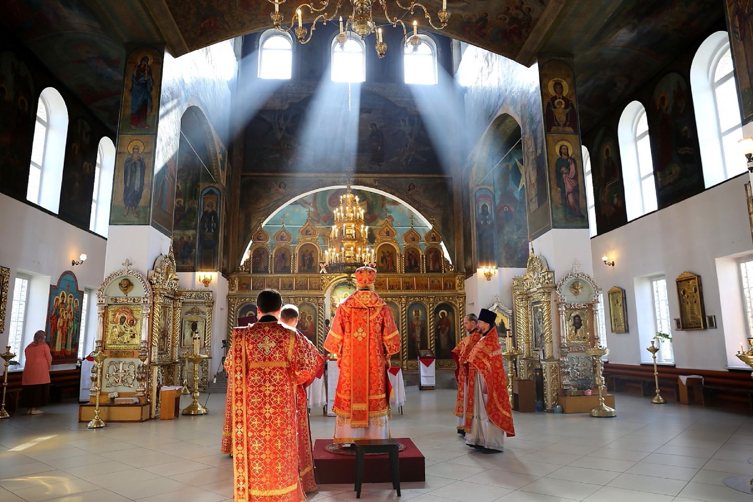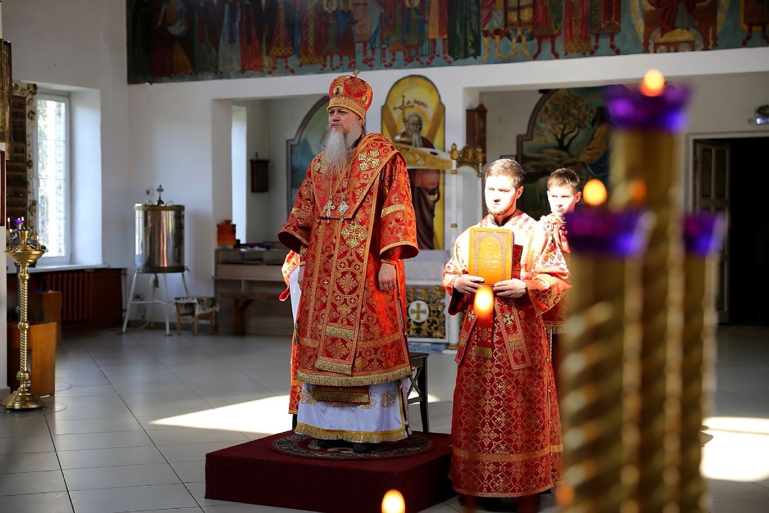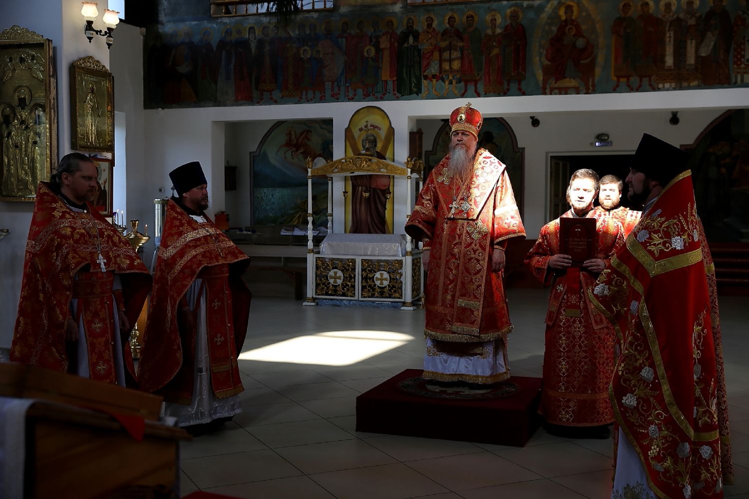 Его Преосвященству сослужило духовенство собора. Богослужебные песнопения исполнял хор под управлением Тимофея Протасова.