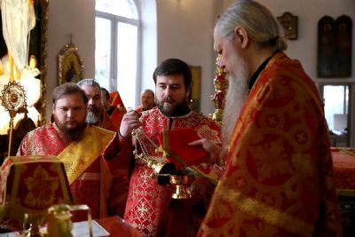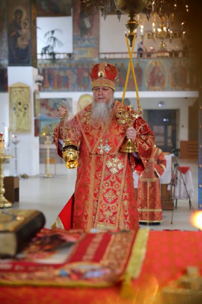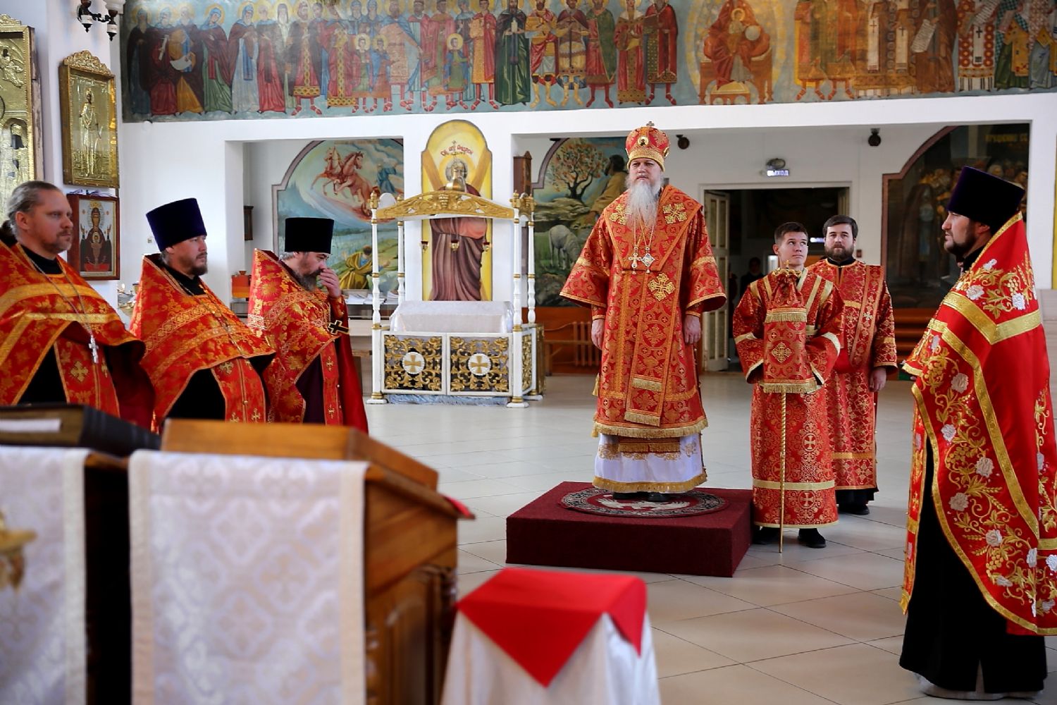 В проповеди епископ Феофан напомнил житие празднуемого в этот день апостола и священномученика Симеона, сродника Господня, который посвятил жизнь проповеди Святого Евангелия и мученически пострадал за Христа при императоре-язычнике Траяне. Также Владыка рассказал о воскрешенной апостолом Петром праведной Тавифе, память которой также празднуется в этот день.