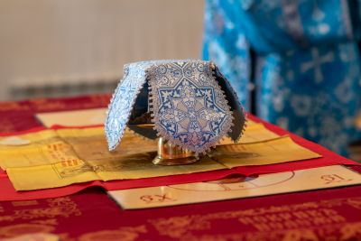 Богослужение началось торжественной встречей архипастыря и облачением в центре храма. За Литургией возносились особые прошения о единении Православной Церкви, мире в Украине и прекращении вредоносного поветрия.
