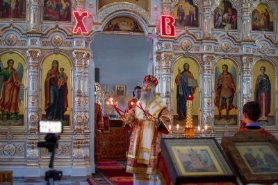 16 мая, накануне Недели 5-й по Пасхе, о самаряныне, митрополит Йошкар-Олинский и Марийский Иоанн возглавил всенощное бдение в Воскресенском соборе г. Йошкар-Олы.
