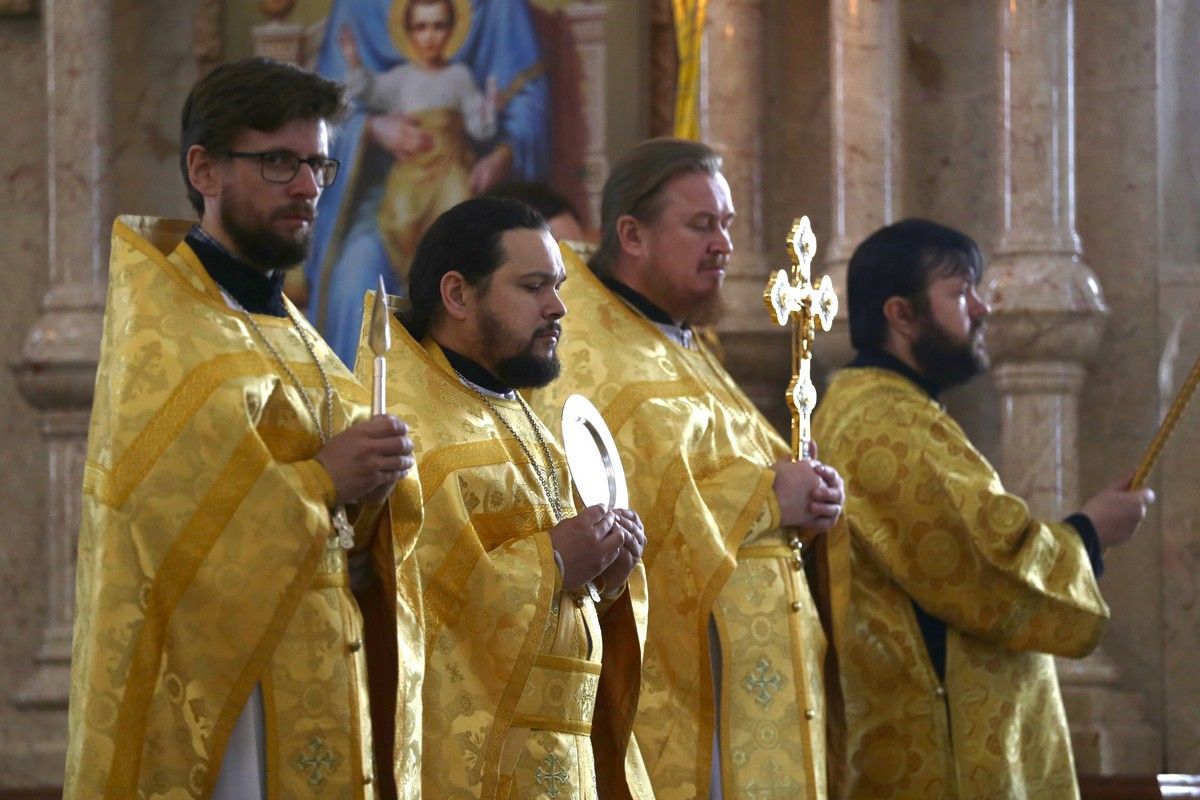 Его Высокопреосвященству сослужили секретарь Йошкар-Олинского епархиального управления иеромонах Серафим (Пасанаев), ключарь собора протоиерей Сергий Поглазов, благочинный Пригородного церковного округа настоятель храма «Всех святых в земле Российской просиявших» п. Советский протоиерей Николай Ярошевич, клирики собора иереи Никифор Захаров, Артемий Промович, Евгений Самойлов, диаконы Андрей Дружинин, Игорь Коваль и клирик храма Рождества Пресвятой Богородицы с. Семеновка протодиакон Михаил Козловский. Песнопения исполнял хор под руководством регента Татьяны Черновой.