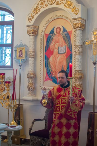 Богослужение началось торжественной встречей Владыки и облачением в центре храма.