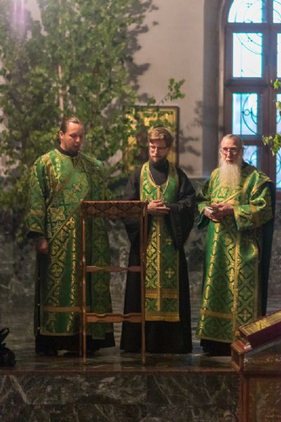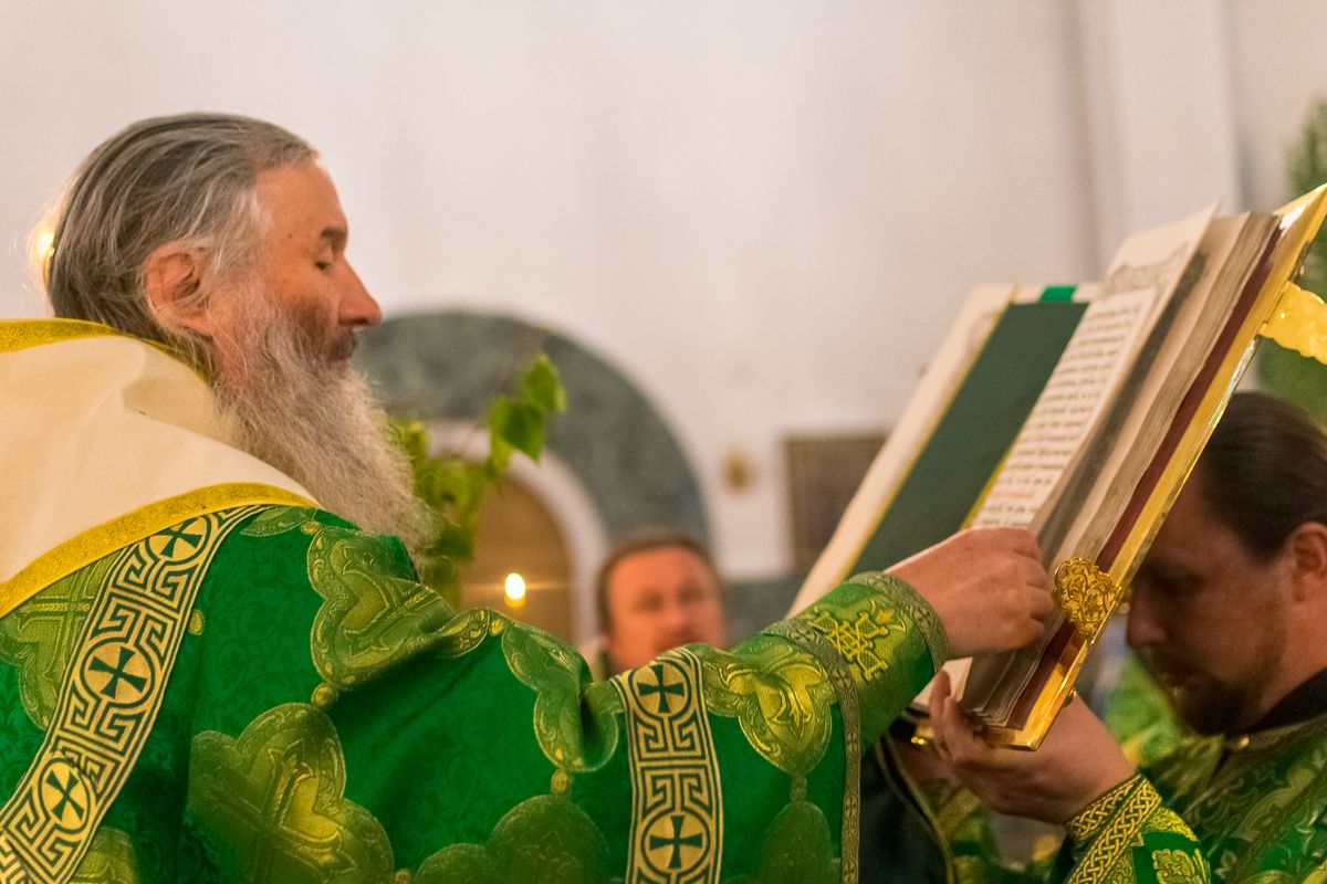 После Литургии была совершена вечерня с коленопреклоненными молитвами. Затем митрополит Иоанн обратился к собравшимся с проповедью: «Сегодня особый день – день, когда полнота Церковная прославляет Святую Троицу. Каждый православный христианин, исповедуя Святую веру, знает, что Бог Отец Сыном сотворил всю вселенную, и Дух Святой оживотворял, украшал богозданную природу. А после и человека сотворил, дав ему образ божественный, вдохнув душу живую. Но первый человек не сохранил послушания Богу, впал в грех – и эта красота и богозданная гармония разрушилась.