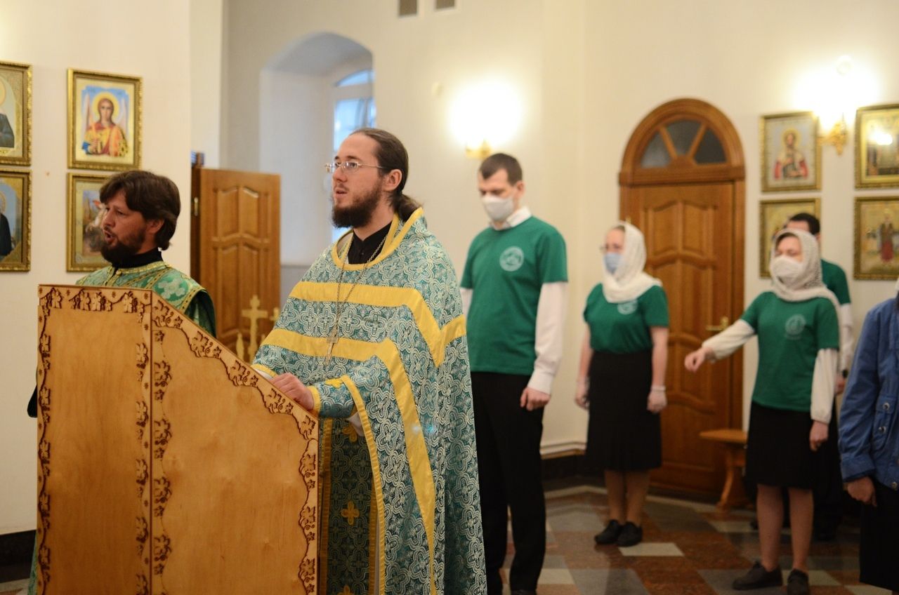 В алтаре помогали добровольцы Алексей Ершов и Иван Трофимов – иподиаконы митрополита Йошкар-Олинского и Марийского Иоанна. На клиросе пел ДоброХор, возглавляемый регентом Любовью Торощиной.