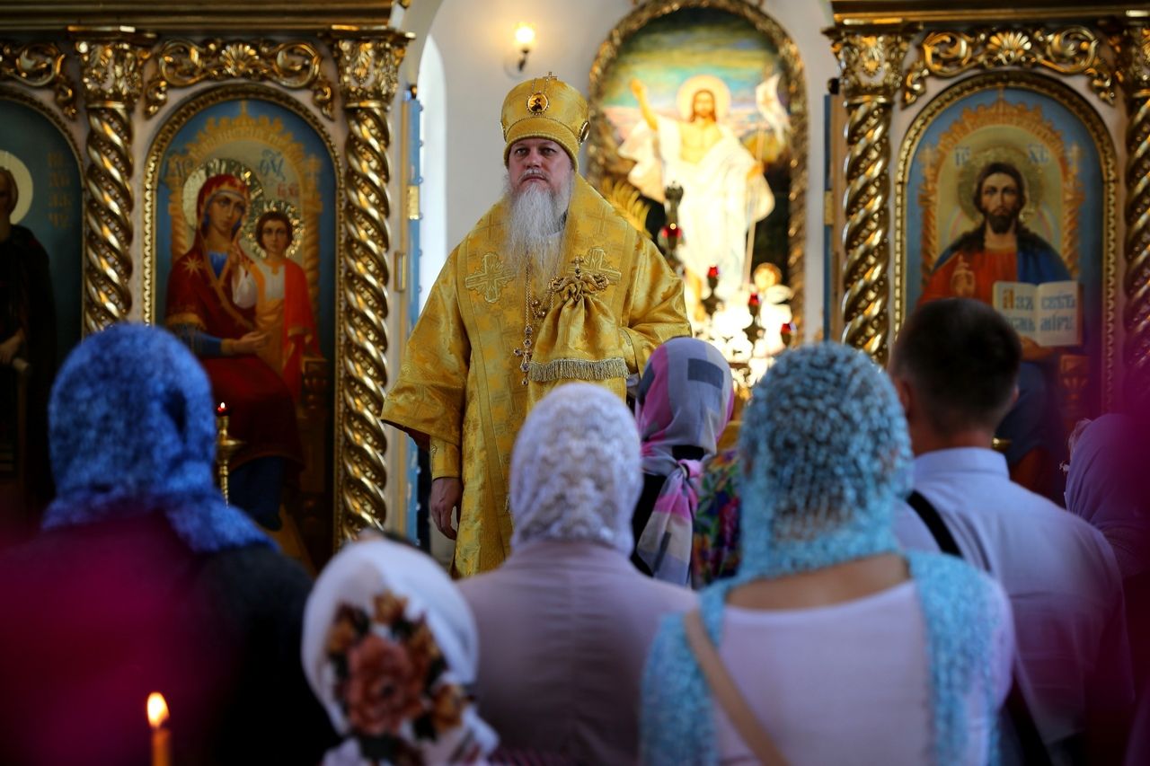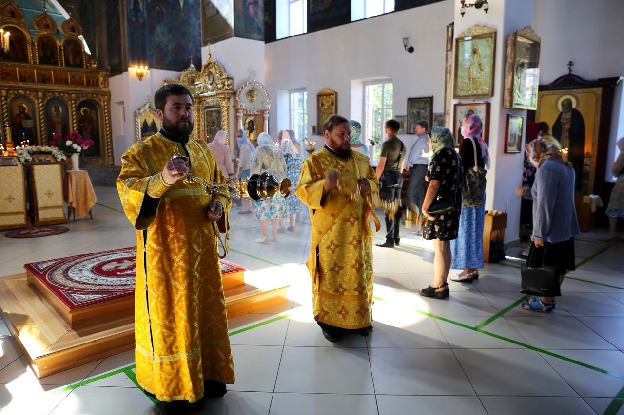 Епископ Волжский и Сернурский Феофан 21 июня, в Неделю 2-ю по Пятидесятнице, день памяти Всех святых, в земле Русской просиявших, совершил Божественную литургию в Никольском кафедральном соборе г. Волжска.