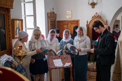 Владыке сослужили клирик монастыря иерей Михаил Лежнин, настоятель храма Покрова Пресвятой Богородицы с. Чкарино протоиерей Валентин Пылаев и клирик храма Рождества Пресвятой Богородицы с. Семеновка протодиакон Михаил Козловский. Песнопения исполняли два хора: детско-юношеский хор «Благовест» под руководством регента Татьяны Черновой и хор Троицкого храма г. Йошкар-Олы под руководством регента Анны Ярошевич. За богослужением помогали Православные добровольцы.