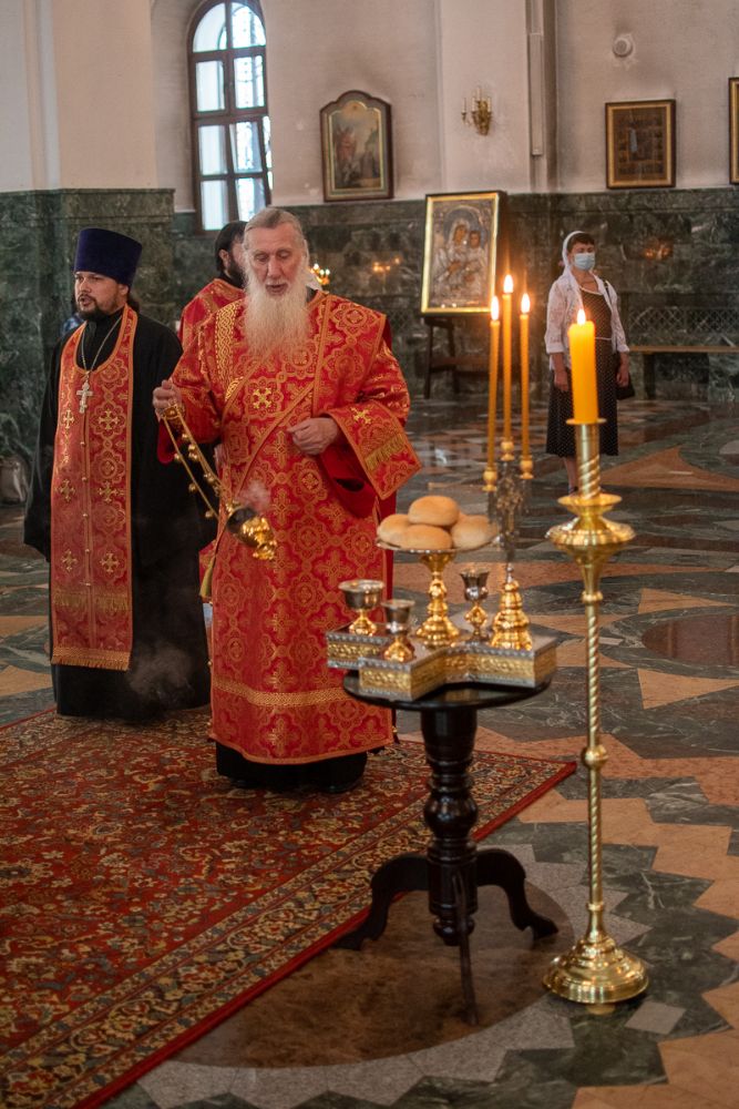 Владыке сослужили ключарь собора протоиерей Сергий Поглазов, клирики собора иереи Никифор Захаров, Артемий Промович, диаконы Андрей Дружинин, Игорь Коваль и клирик храма Рождества Пресвятой Богородицы протодиакон Михаил Козловский. Песнопения исполнял хор под руководством регента Татьяны Черновой.
