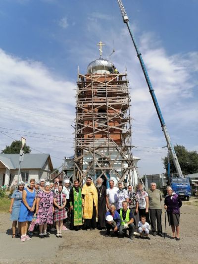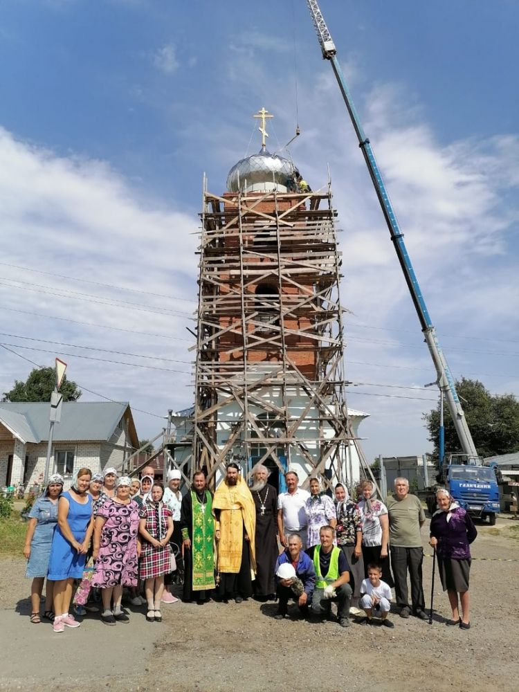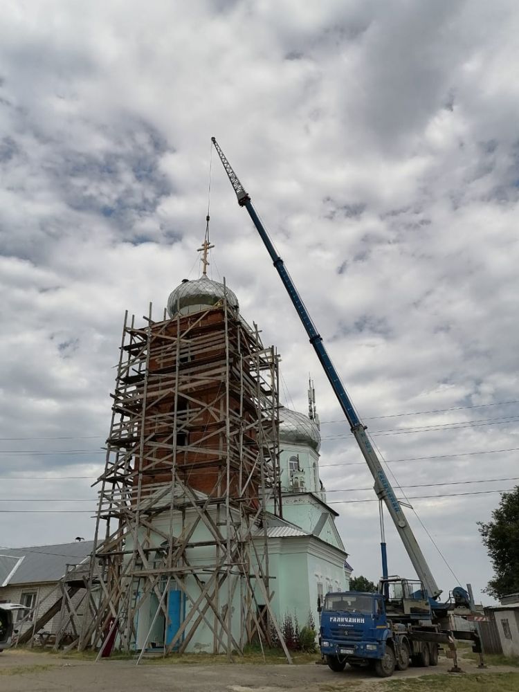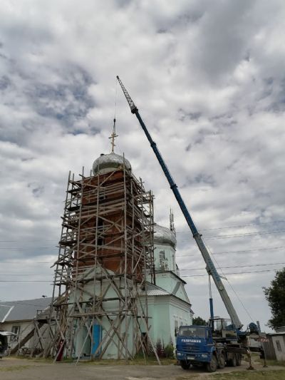 На колокольню храма в с. Сотнур подняты купол и крест 4143