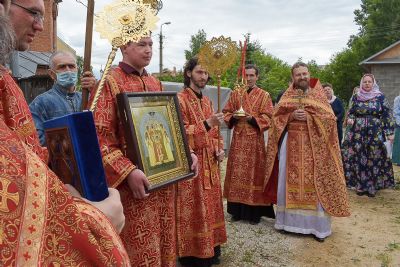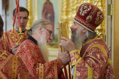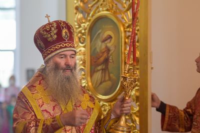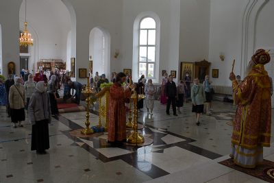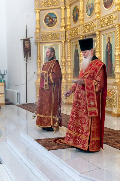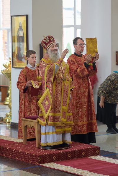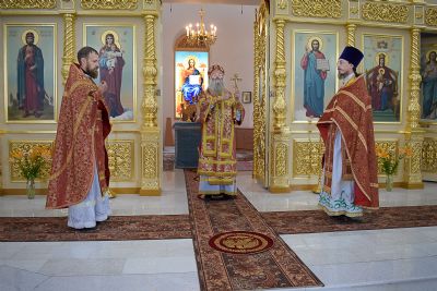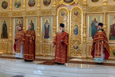 Архипастырю сослужили настоятель храма протоиерей Алексий Михайлов, клирики храма иерей Алексий Добиков, диакон Игорь Кочуев и клирик храма Рождества Пресвятой Богородицы с. Семеновка протодиакон Михаил Козловский. Песнопения исполнял хор храма под управлением регента Ольги Михайловой.