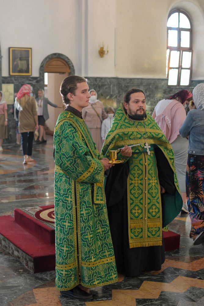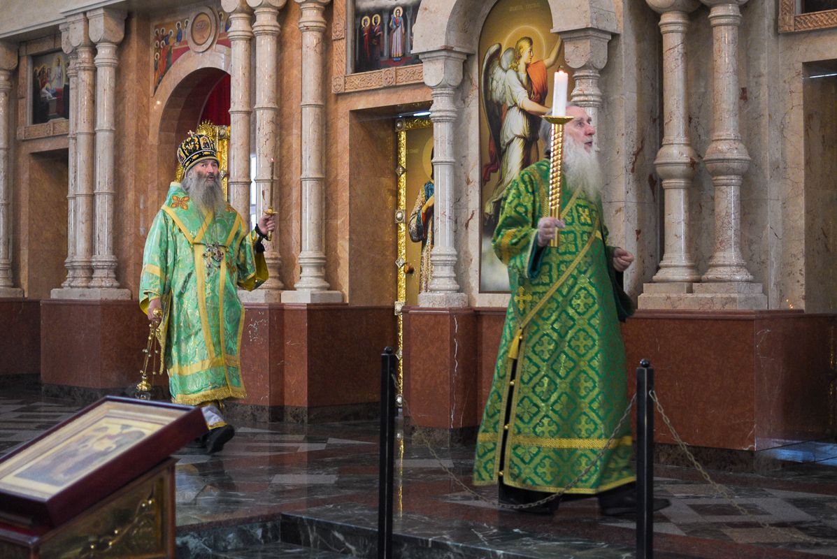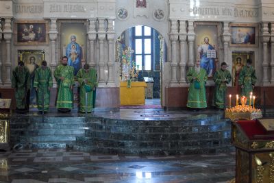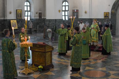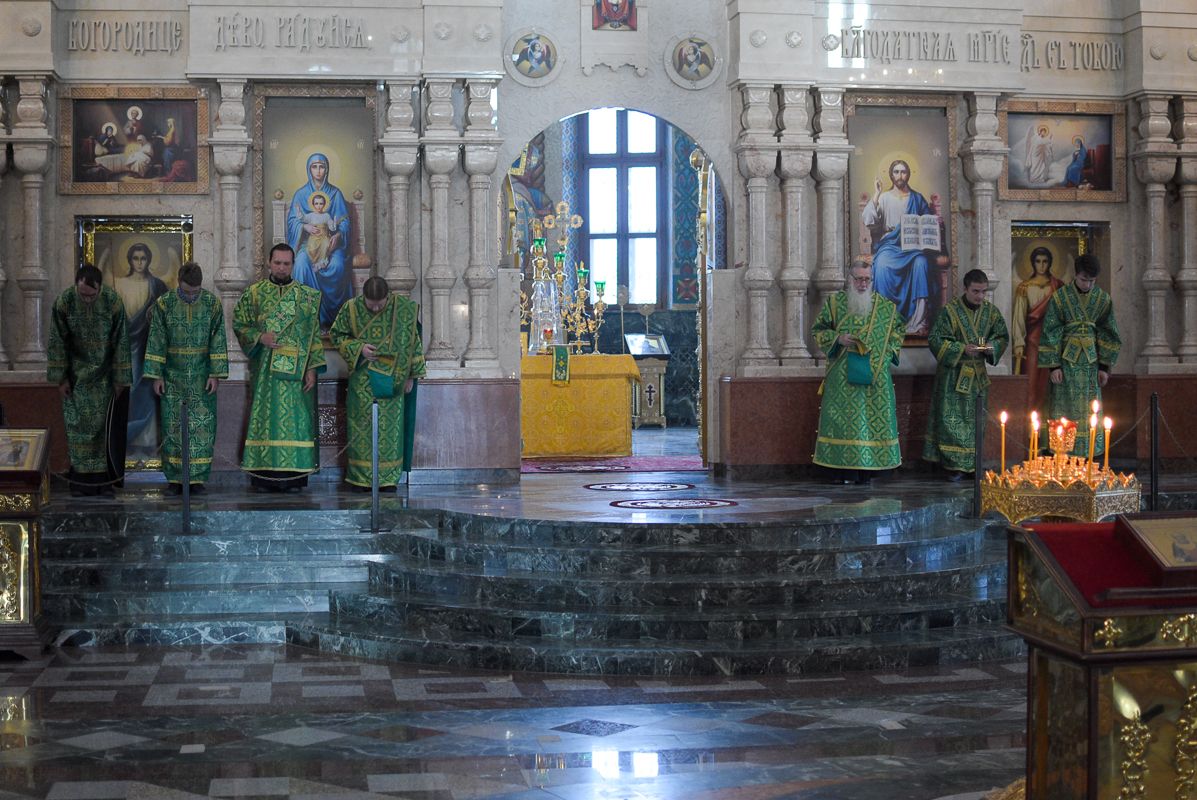 Архипастырю сослужили клирики собора иереи Никифор Захаров, Артемий Промович, диаконы Андрей Дружинин, Игорь Коваль и клирик храма Рождества Пресвятой Богородицы протодиакон Михаил Козловский. Пел хор под руководством регента Татьяны Черновой.