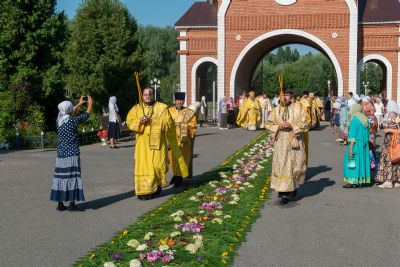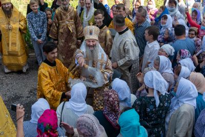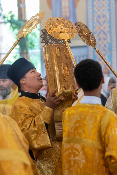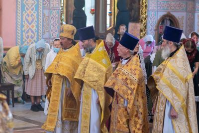 По окончании литургии был совершен Крестный ход и молебен по особому чину вокруг соборного храма.