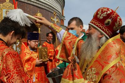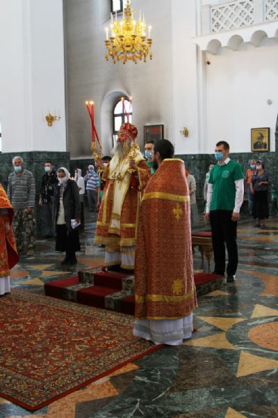 В соответствии с санитарными требованиями, все прихожане находились в храме в медицинских масках, соблюдали социальную дистанцию, иконы обрабатывались дезинфицирующим средством.