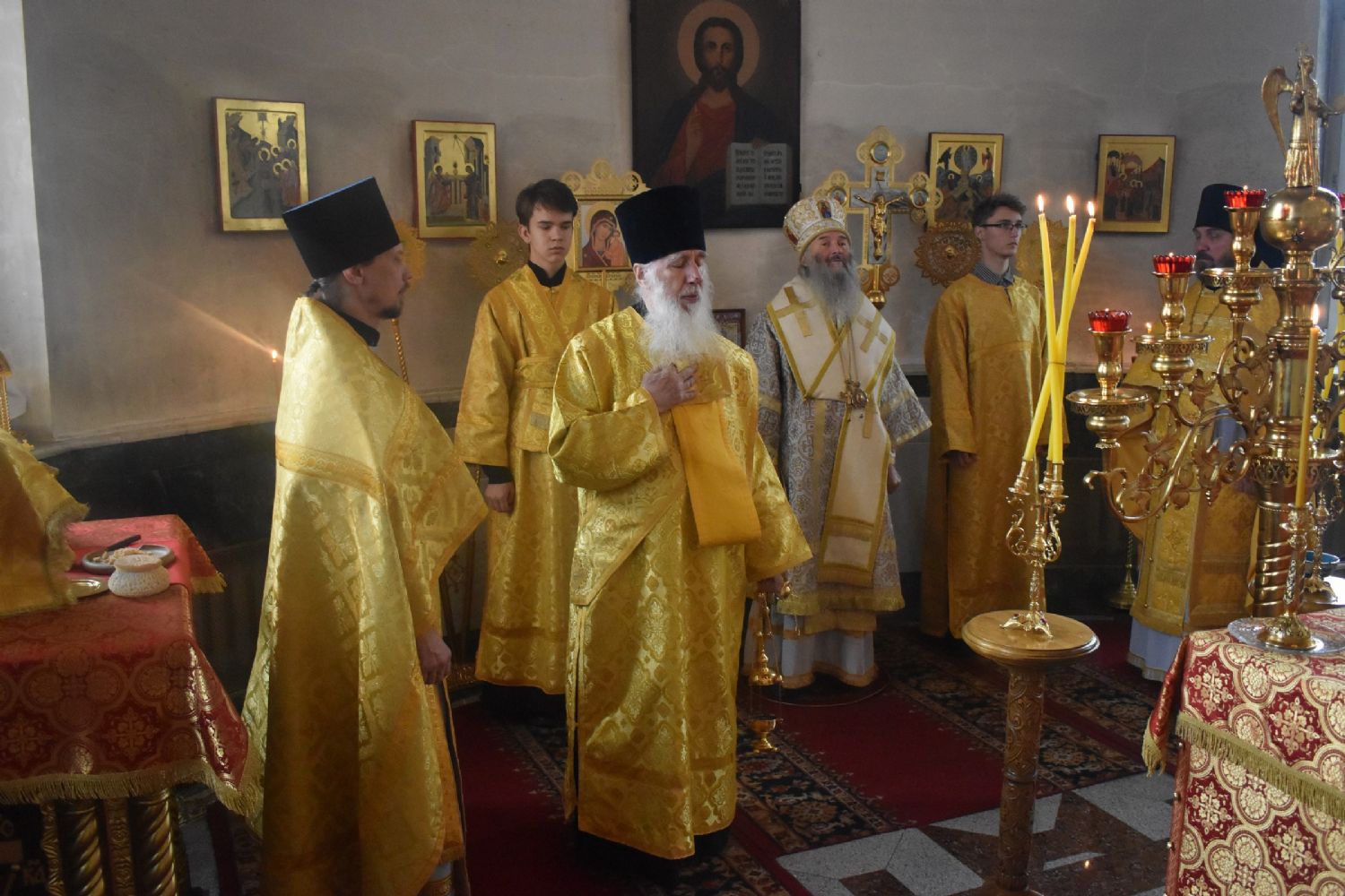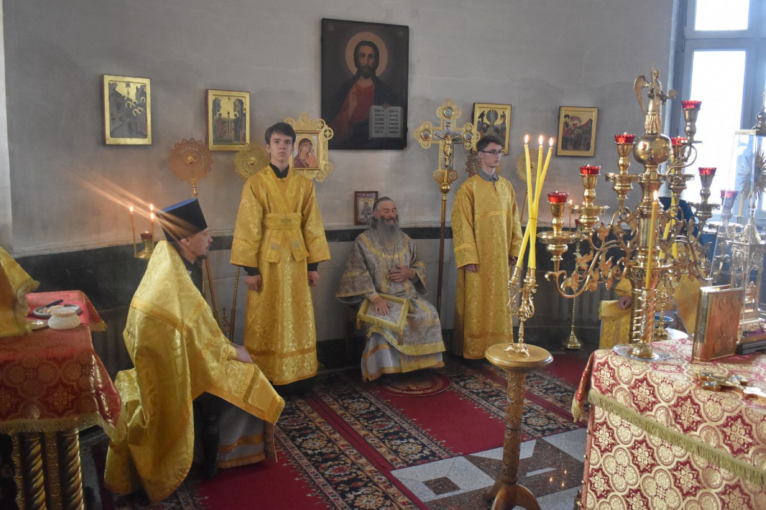 Владыке сослужили секретарь епархиального управления иеромонах Серафим (Пасанаев), клирики собора иереи Артемий Промович, Никифор Захаров, Евгений Самойлов, диакон Игорь Коваль и клирик храма Рождества Богородицы с. Семеновка протодиакон Михаил Козловский. Песнопения исполнял детско-юношеский хор «Благовест» под руководством регента Татьяны Черновой.