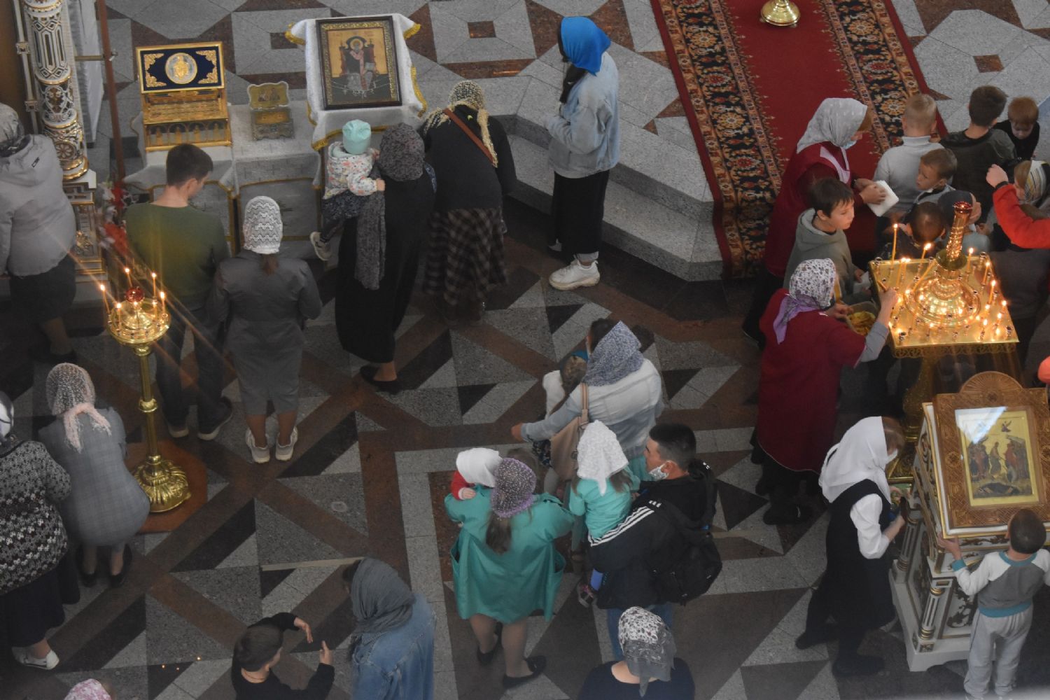 В соответствии с санитарными требованиями, прихожане находились в храме в медицинских масках, соблюдали социальную дистанцию, иконы обрабатывались дезинфицирующим средством.