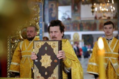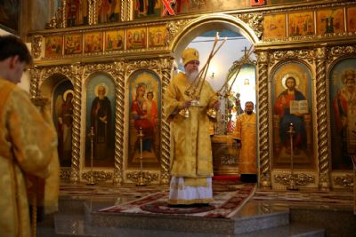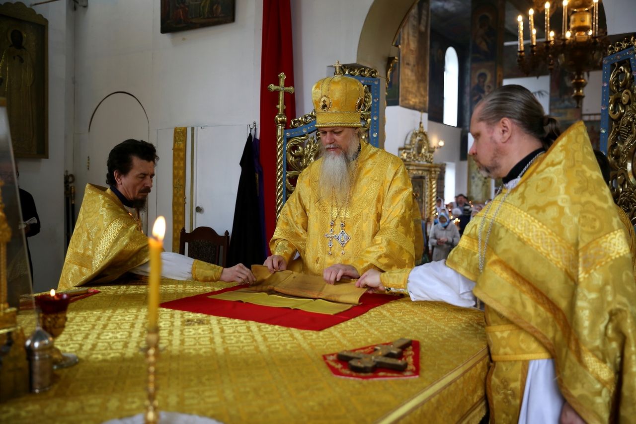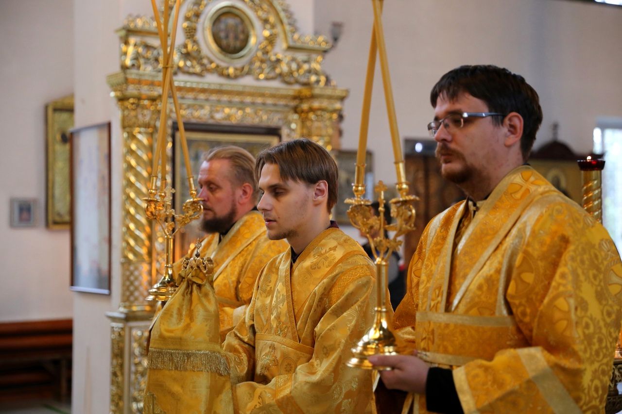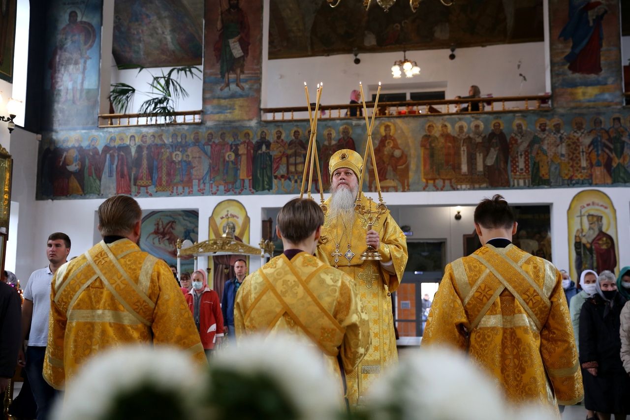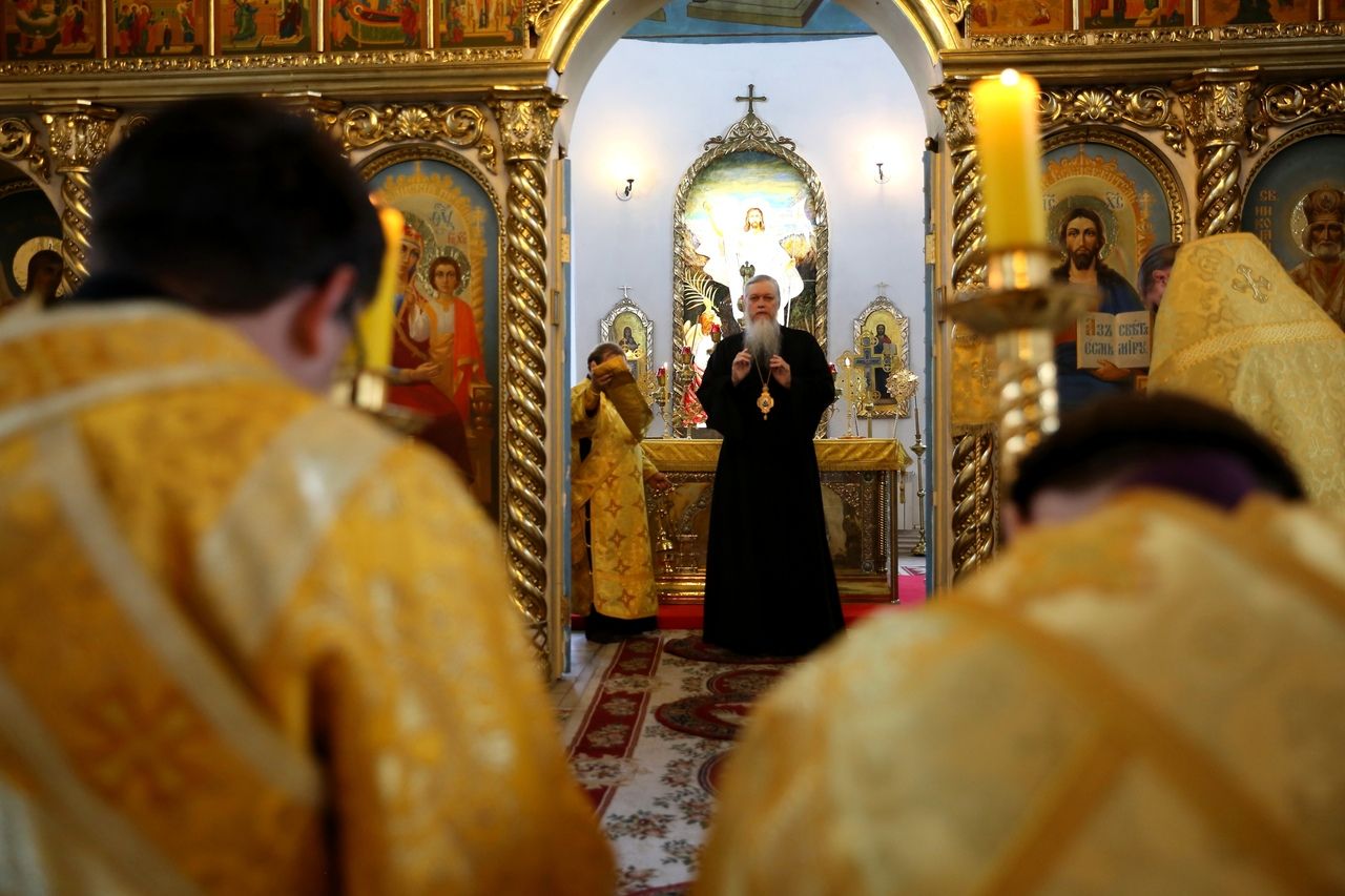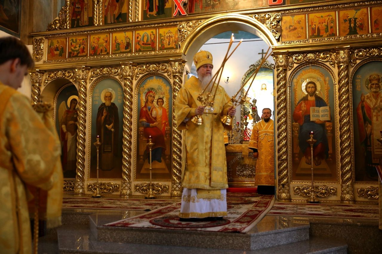 Архипастырю сослужило духовенство собора. Богослужебные песнопения исполнял хор под управлением Тимофея Протасова.