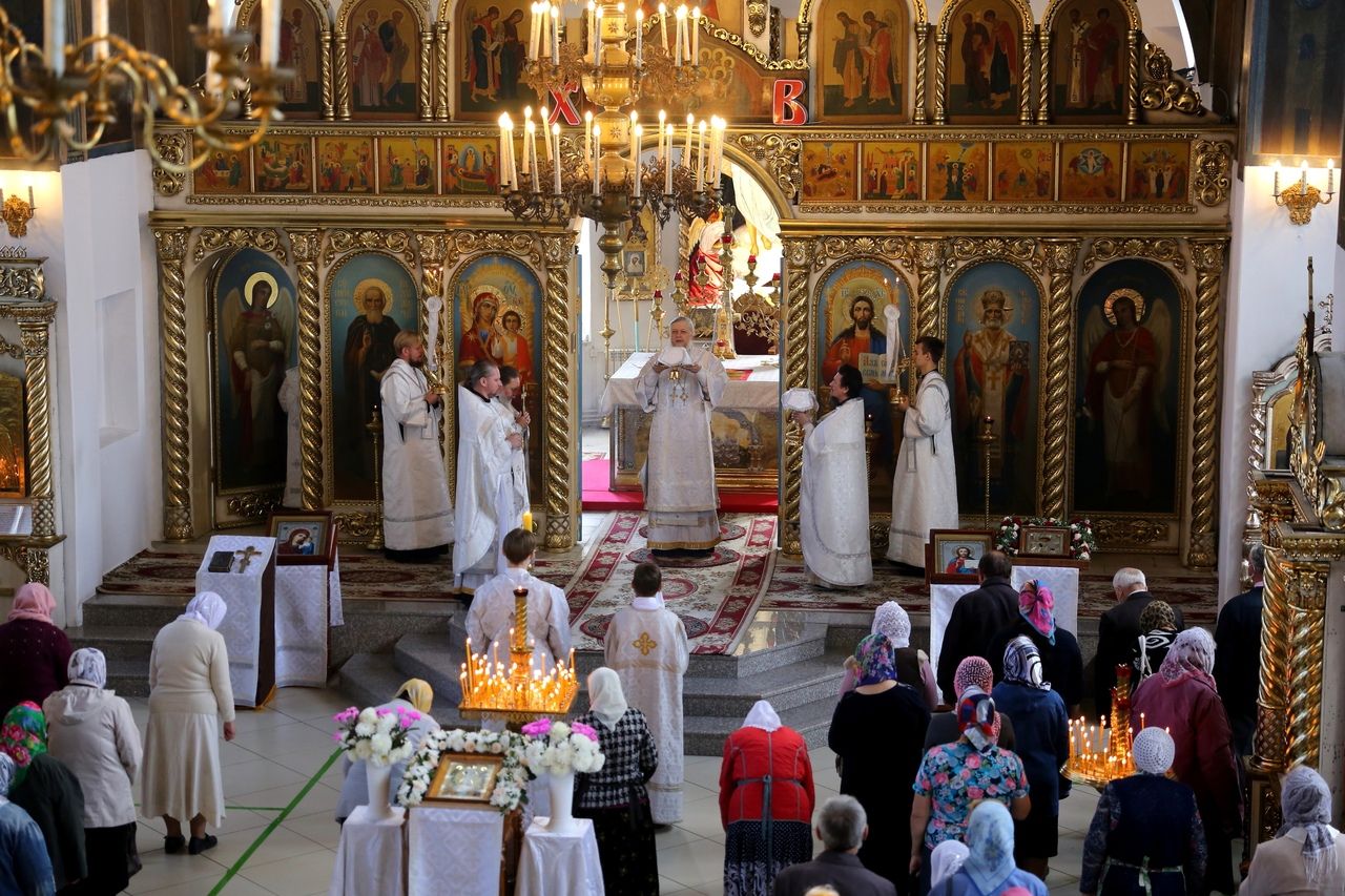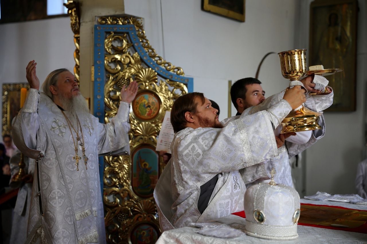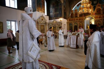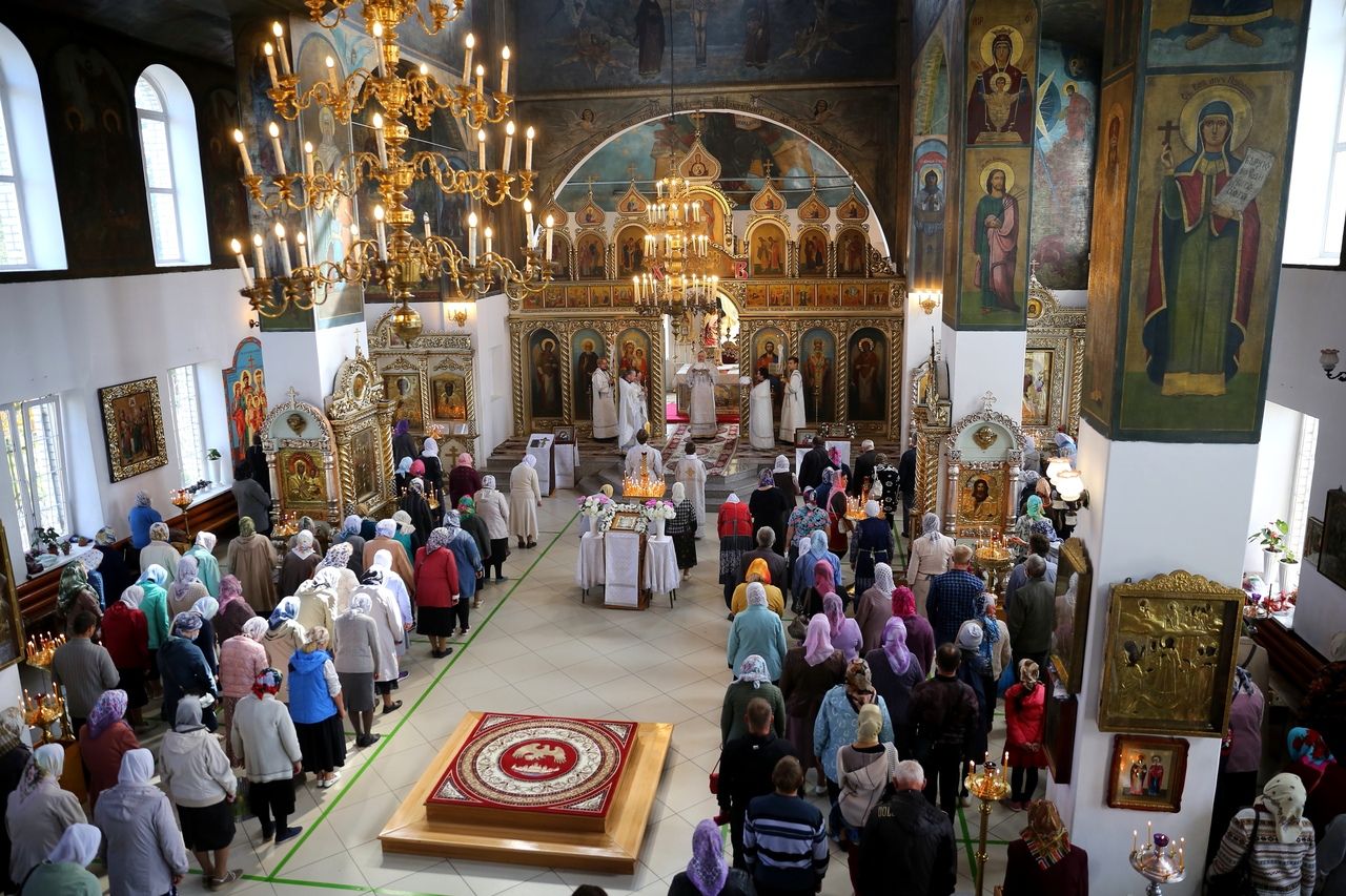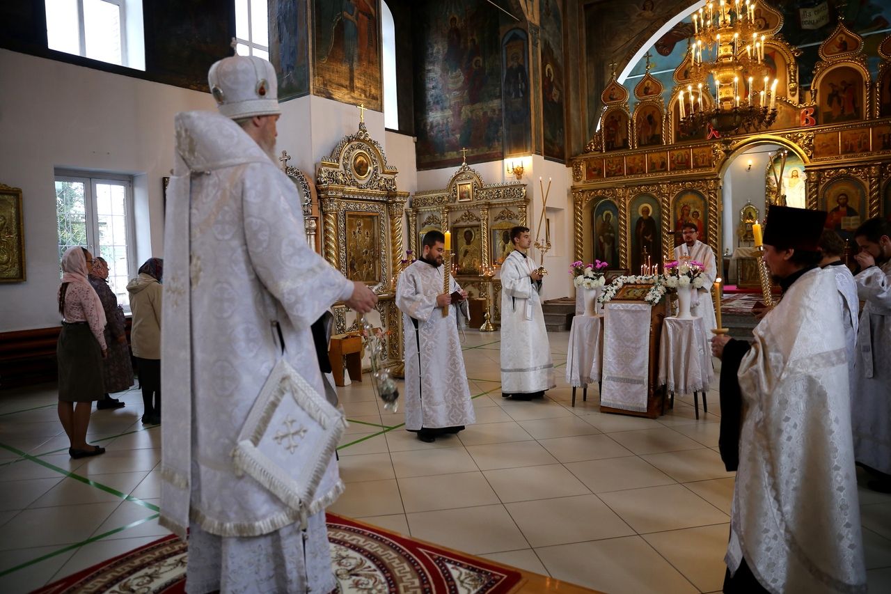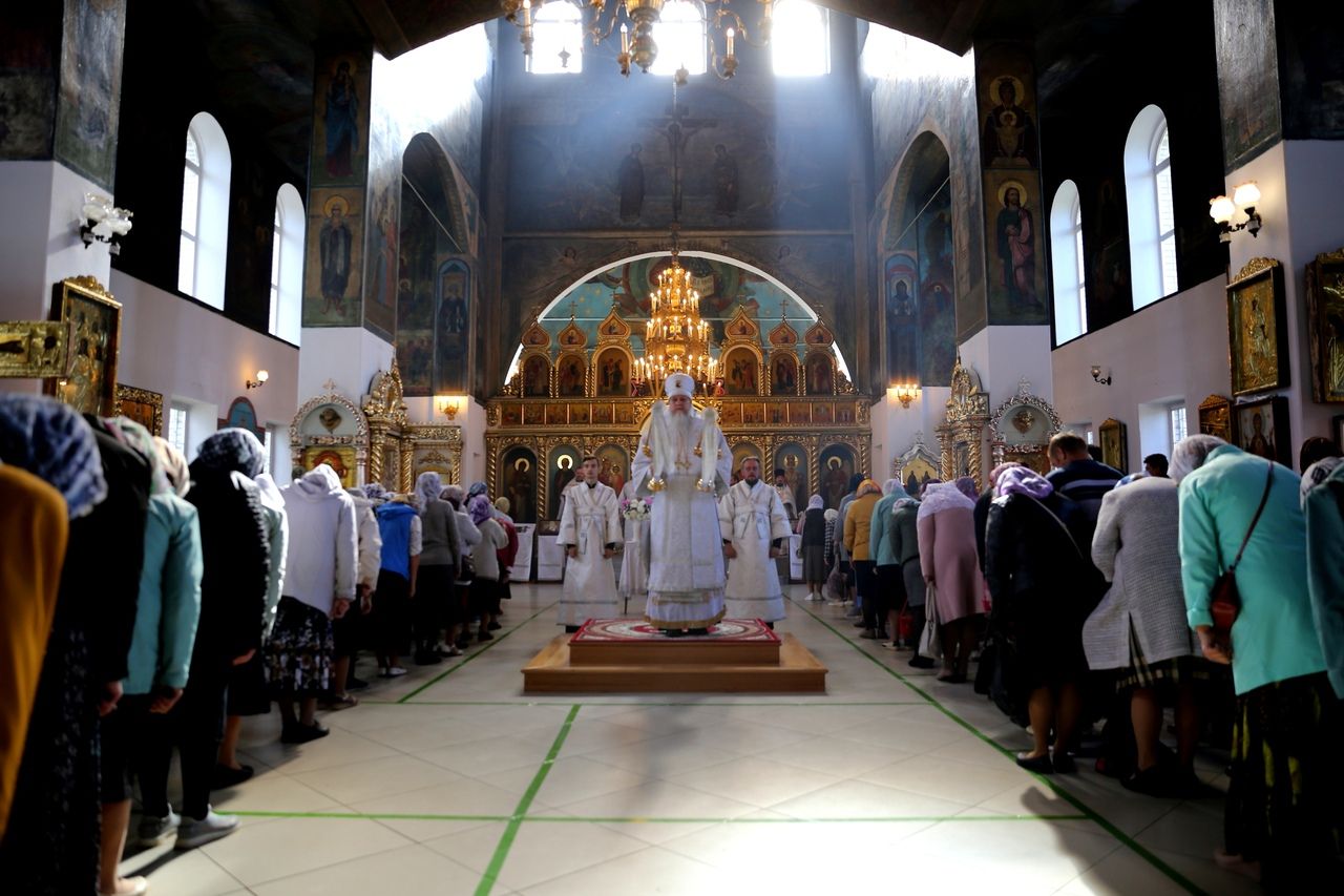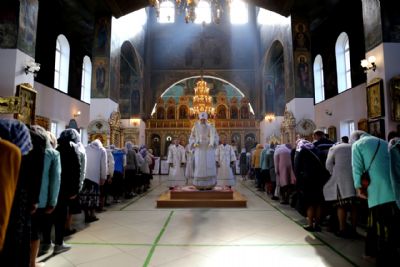 19 августа, в праздник Преображения Господа Бога и Спаса нашего Иисуса Христа, епископ Волжский и Сернурский Феофан совершил Божественную литургию в Никольском кафедральном соборе г. Волжска. Накануне Владыка возглавил здесь же всенощное бдение.