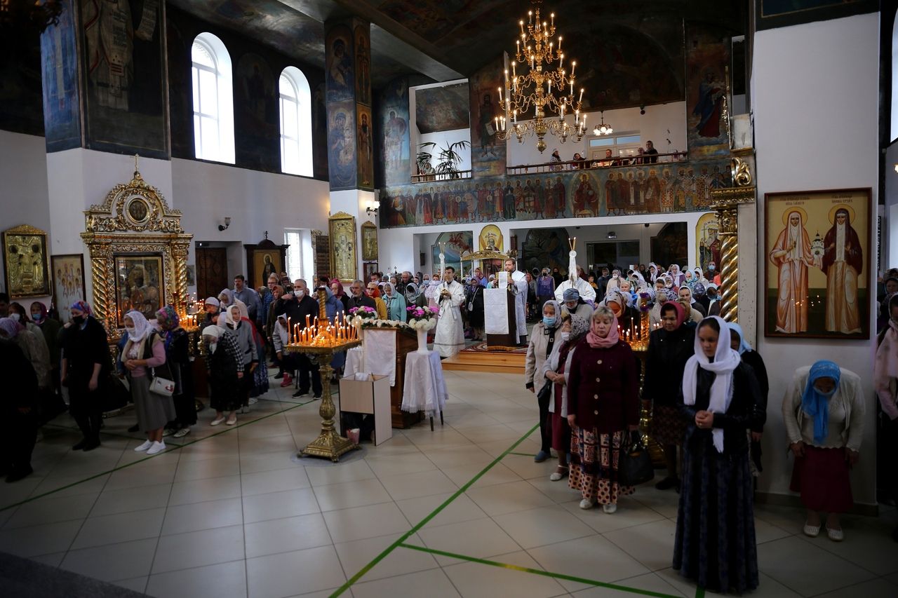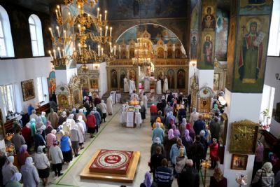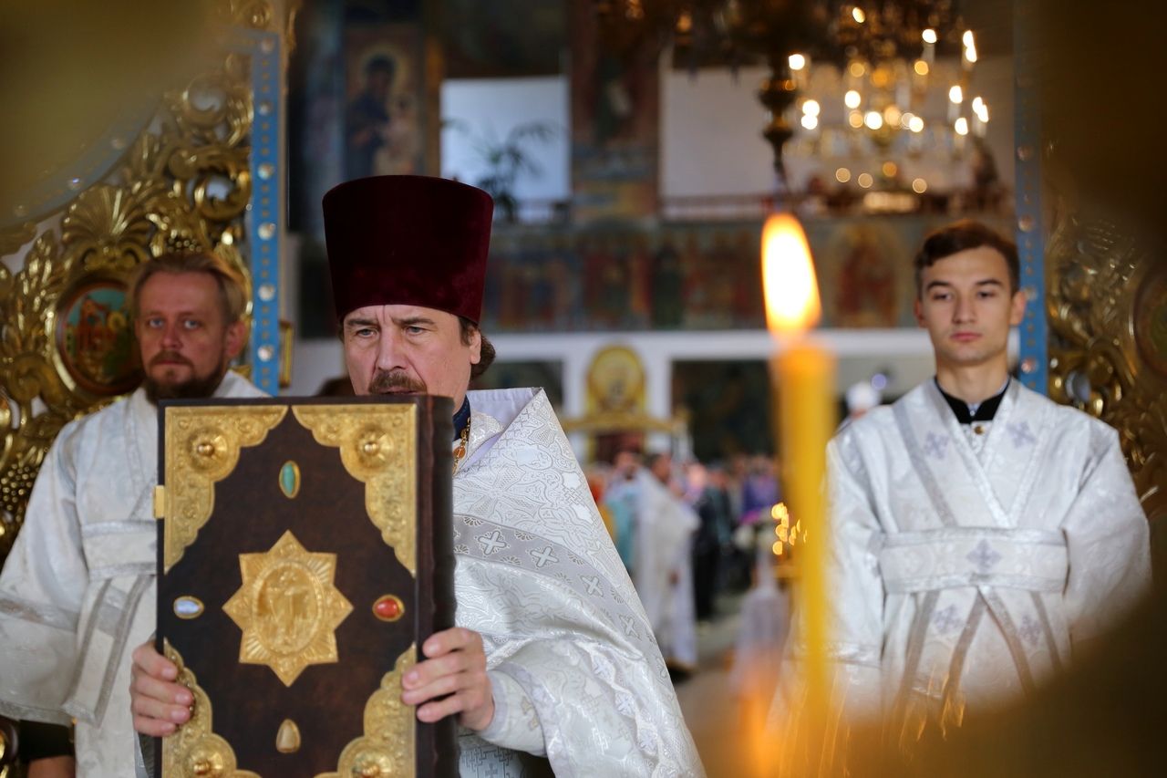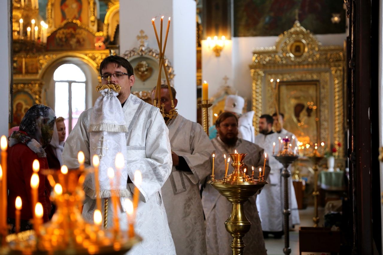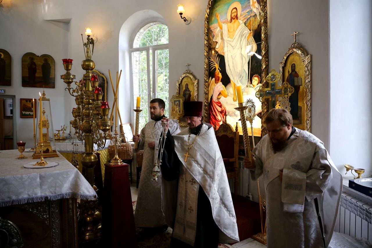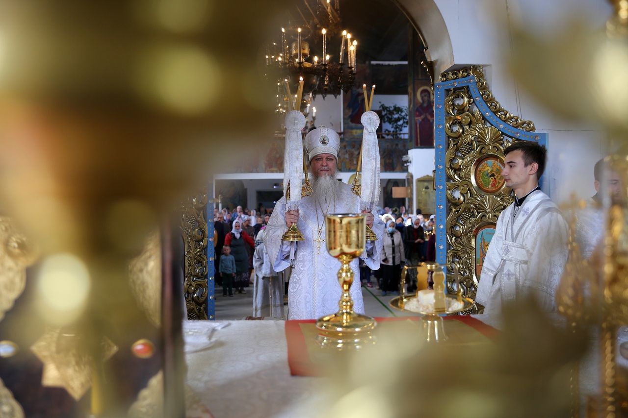 19 августа, в праздник Преображения Господа Бога и Спаса нашего Иисуса Христа, епископ Волжский и Сернурский Феофан совершил Божественную литургию в Никольском кафедральном соборе г. Волжска. Накануне Владыка возглавил здесь же всенощное бдение.