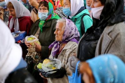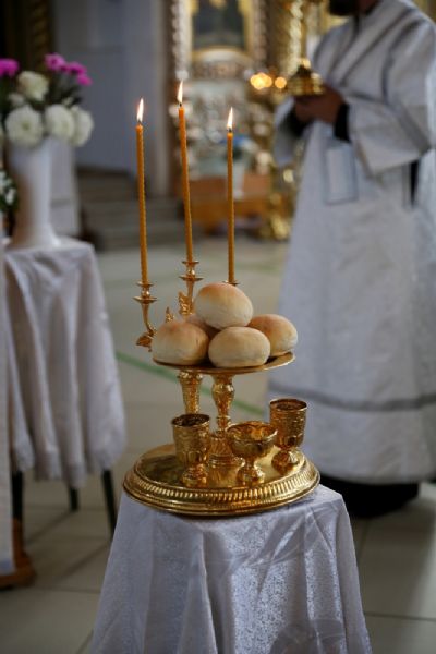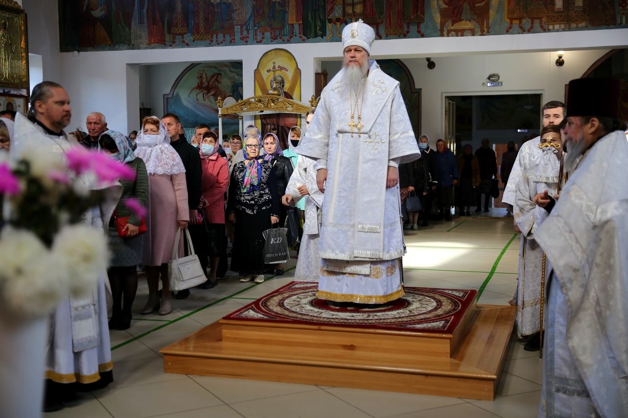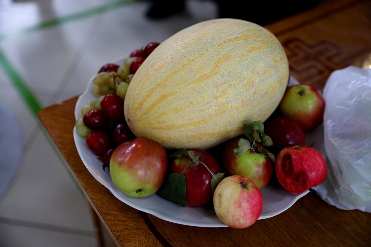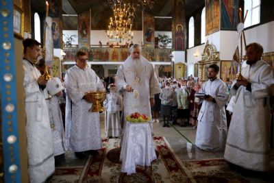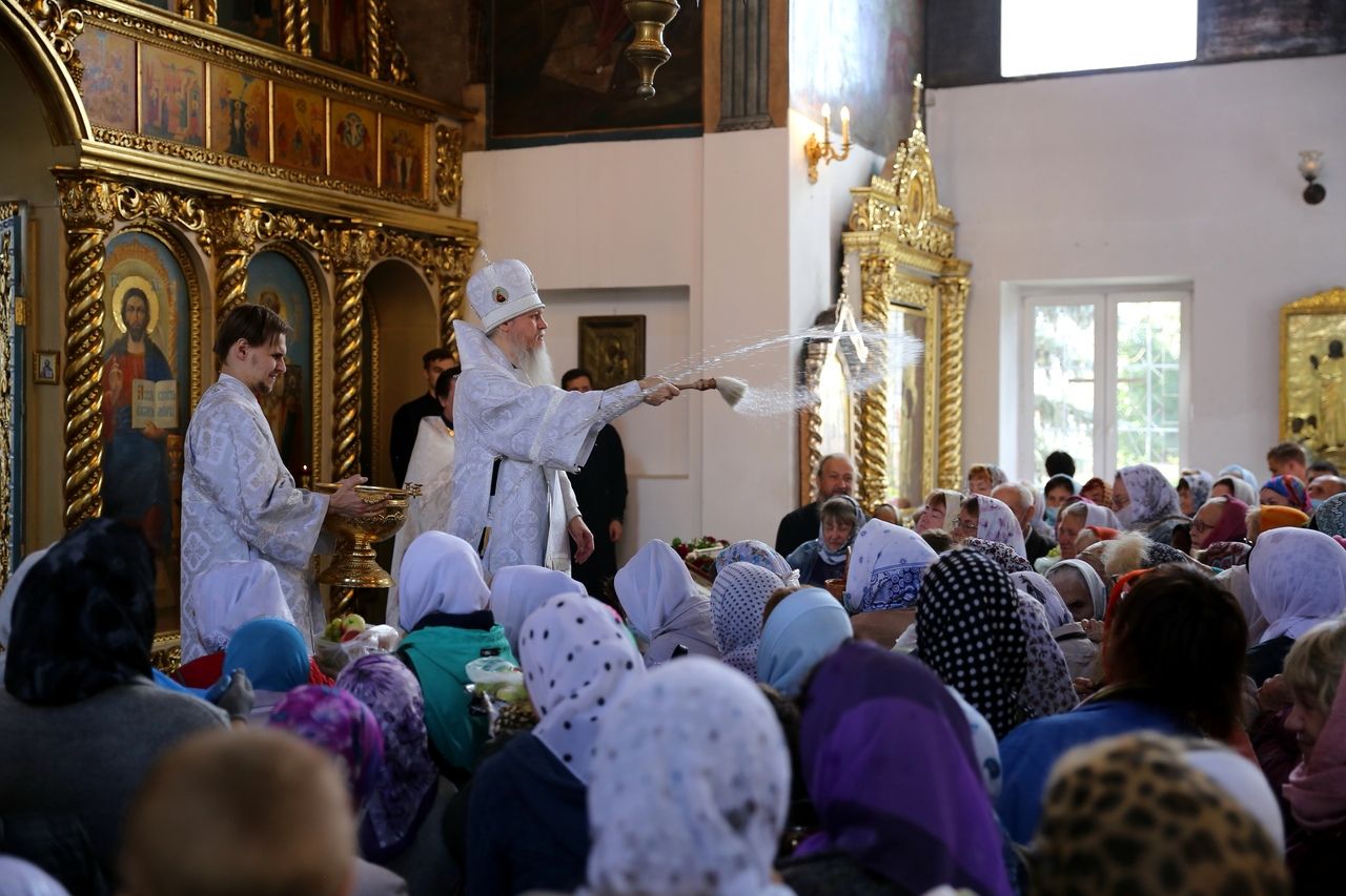 В завершение богослужения епископ Феофан совершил чин освящения плодов нового урожая. Яблоки, груши, виноград, принесенные прихожанами в знак благодарности Господу, были окроплены святой водой.