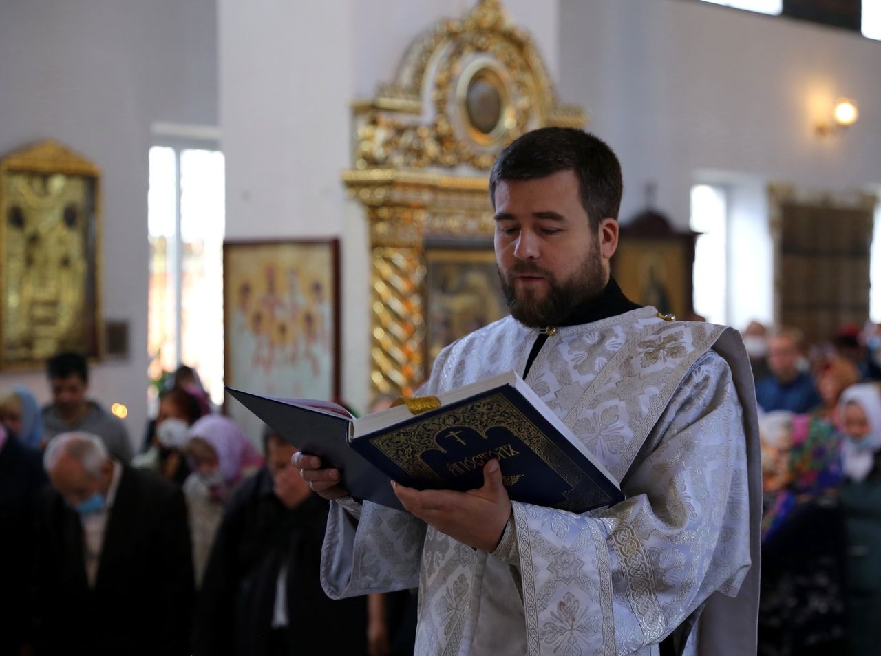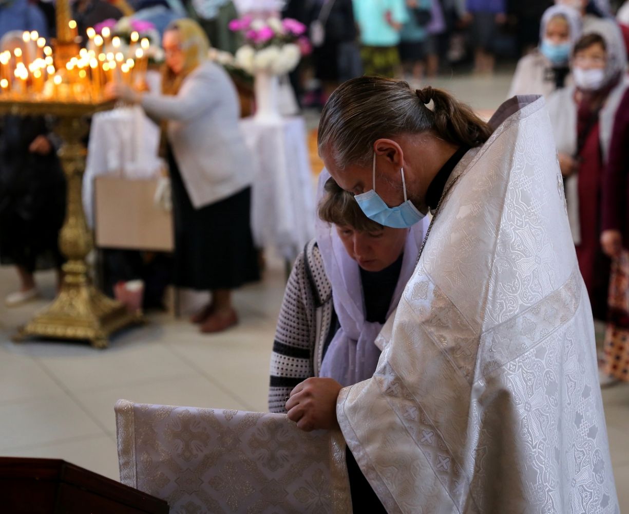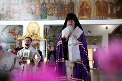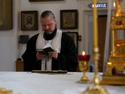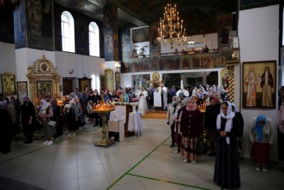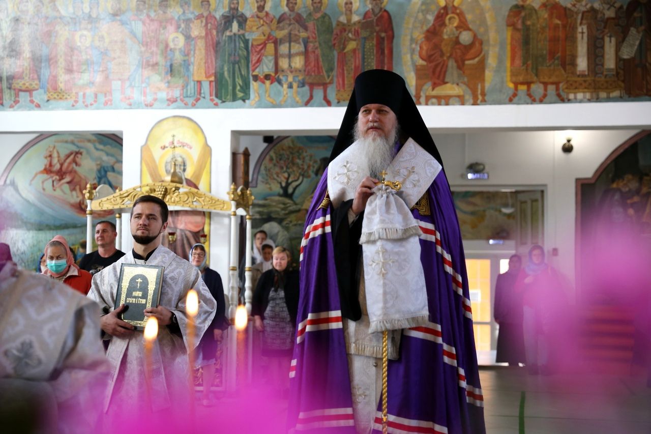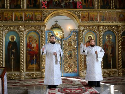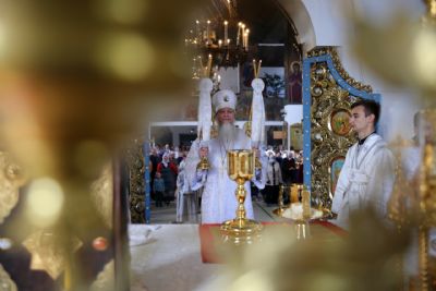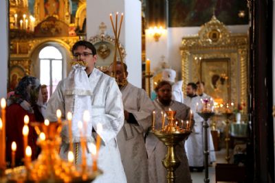 Его Преосвященству сослужили клирики собора. Песнопения исполнил соборный хор.