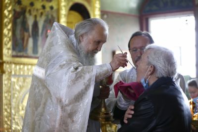 В ответном слове батюшка рассказал прихожанам о своей жизни, о тех приходах, где ему довелось нести служение, о храмах, которые он построил или восстановил. К этому праздничному дню в Вознесенском соборе была установлена Мироносицкая икона Божией Матери, богато украшенная окладом и золотным шитьем по древнерусским технологиям. Этот образ стал одним из многих храмовых икон, украшенных и облагороженных отцом Евгением.