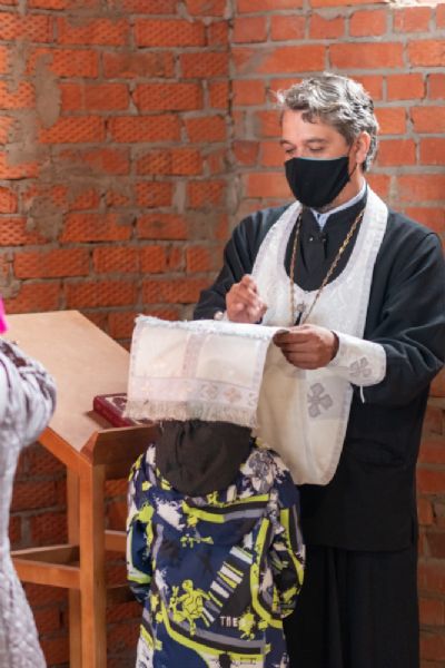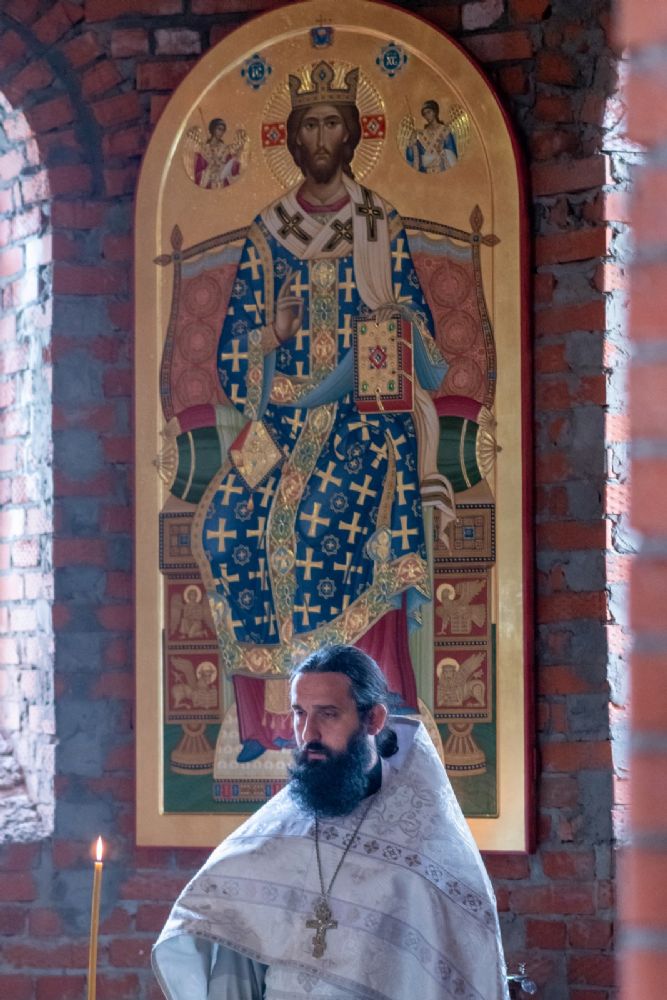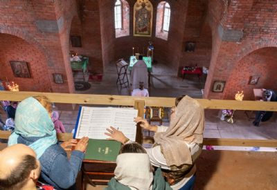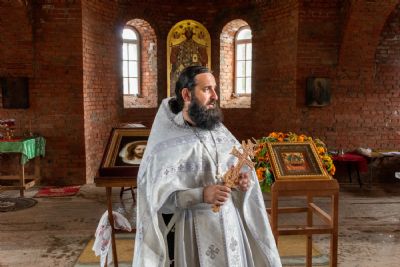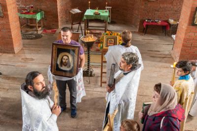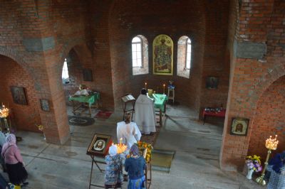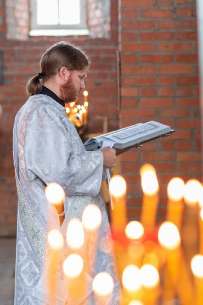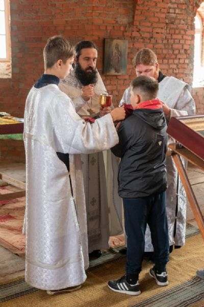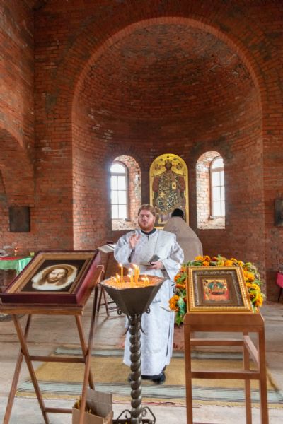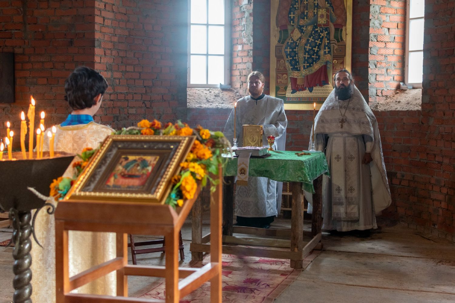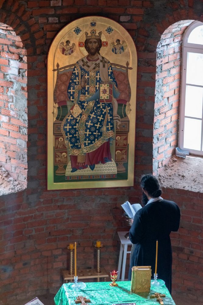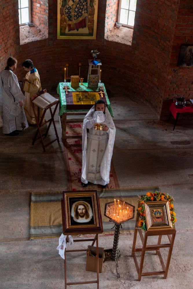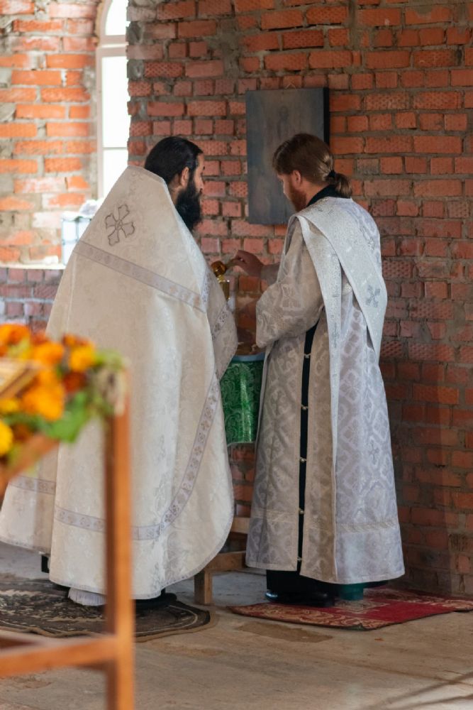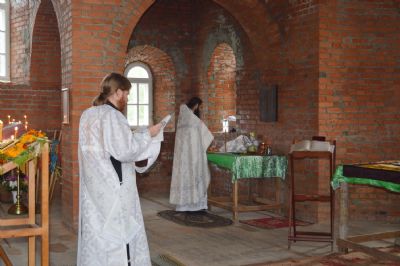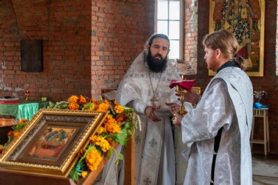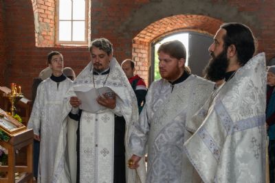 Богослужение проходило внутри строящегося храма. За Литургией отцу Никите сослужили настоятель храма Рождества Христова г. Йошкар-Олы иерей Александр Лоскутов и клирик Благовещенского кафедрального собора диакон Андрей Дружинин.