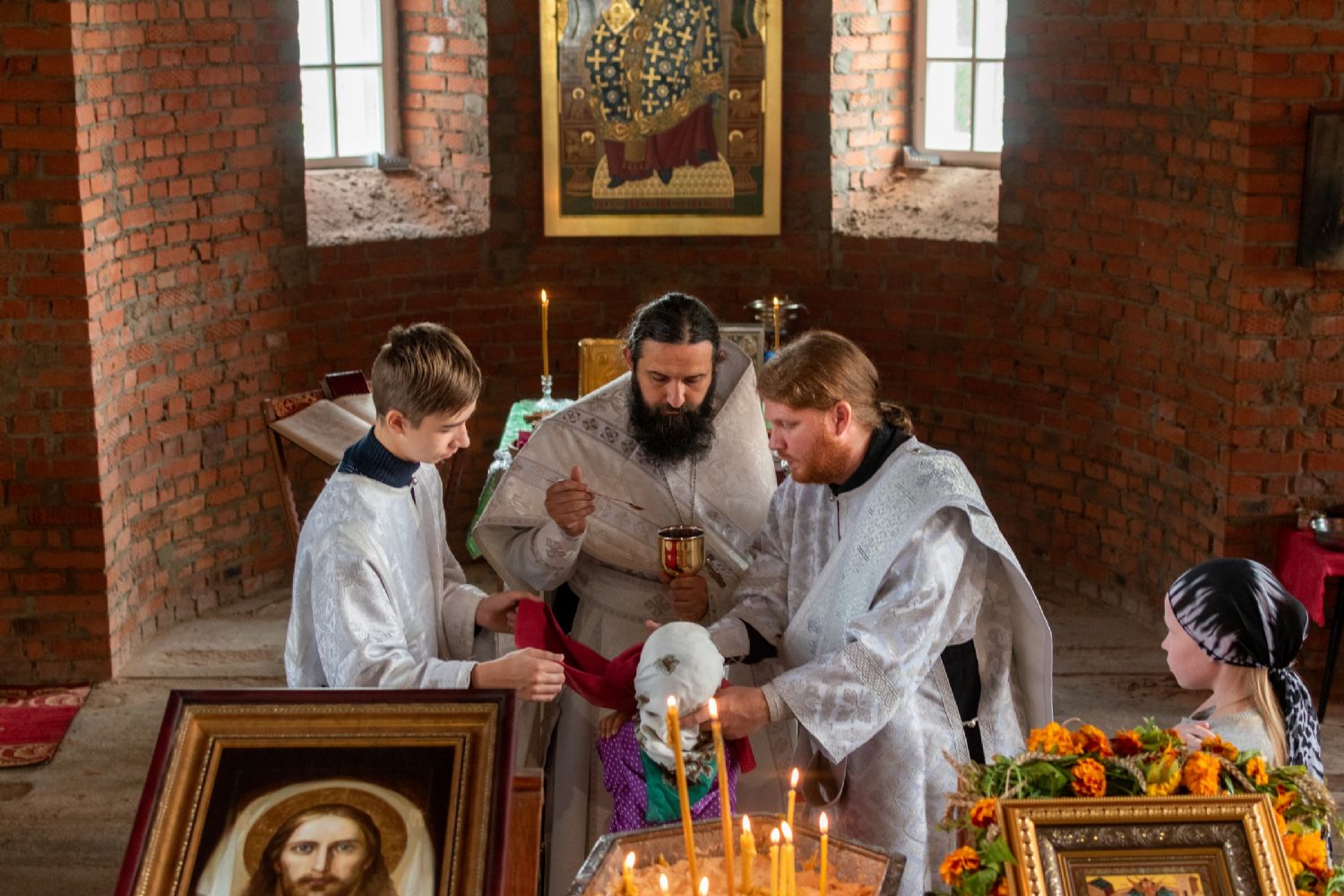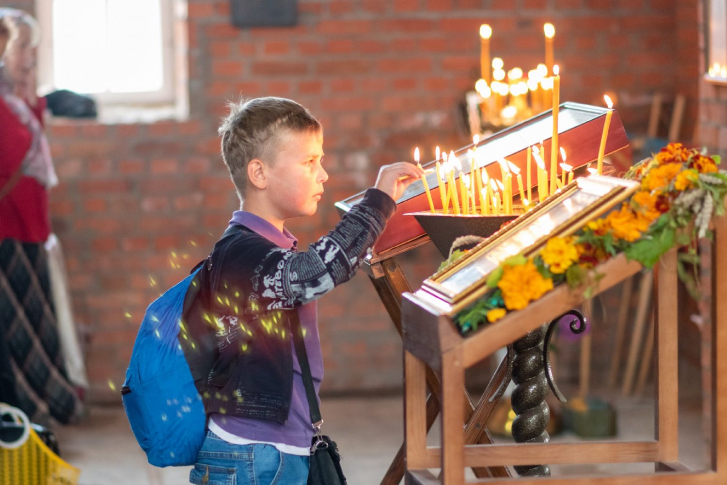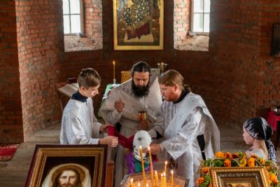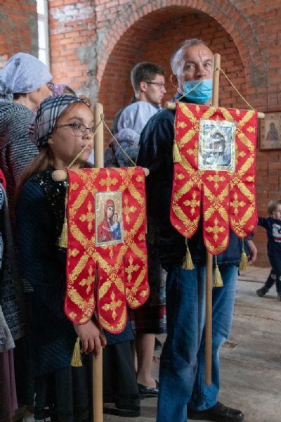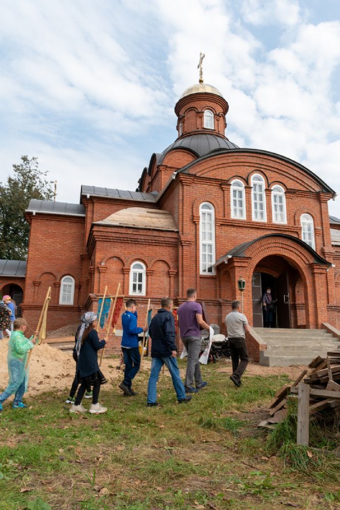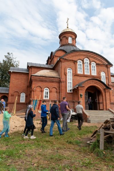 После Литургии прошел Крестный ход вокруг храма с кроплением святой водой и чтением Евангелия. Затем был отслужен молебен на начало учения отроков.