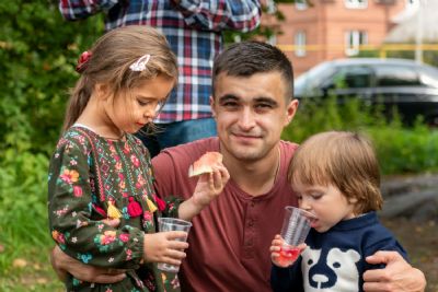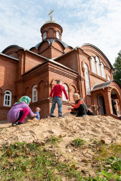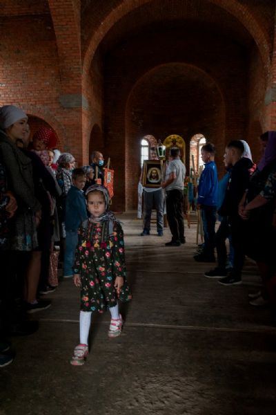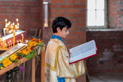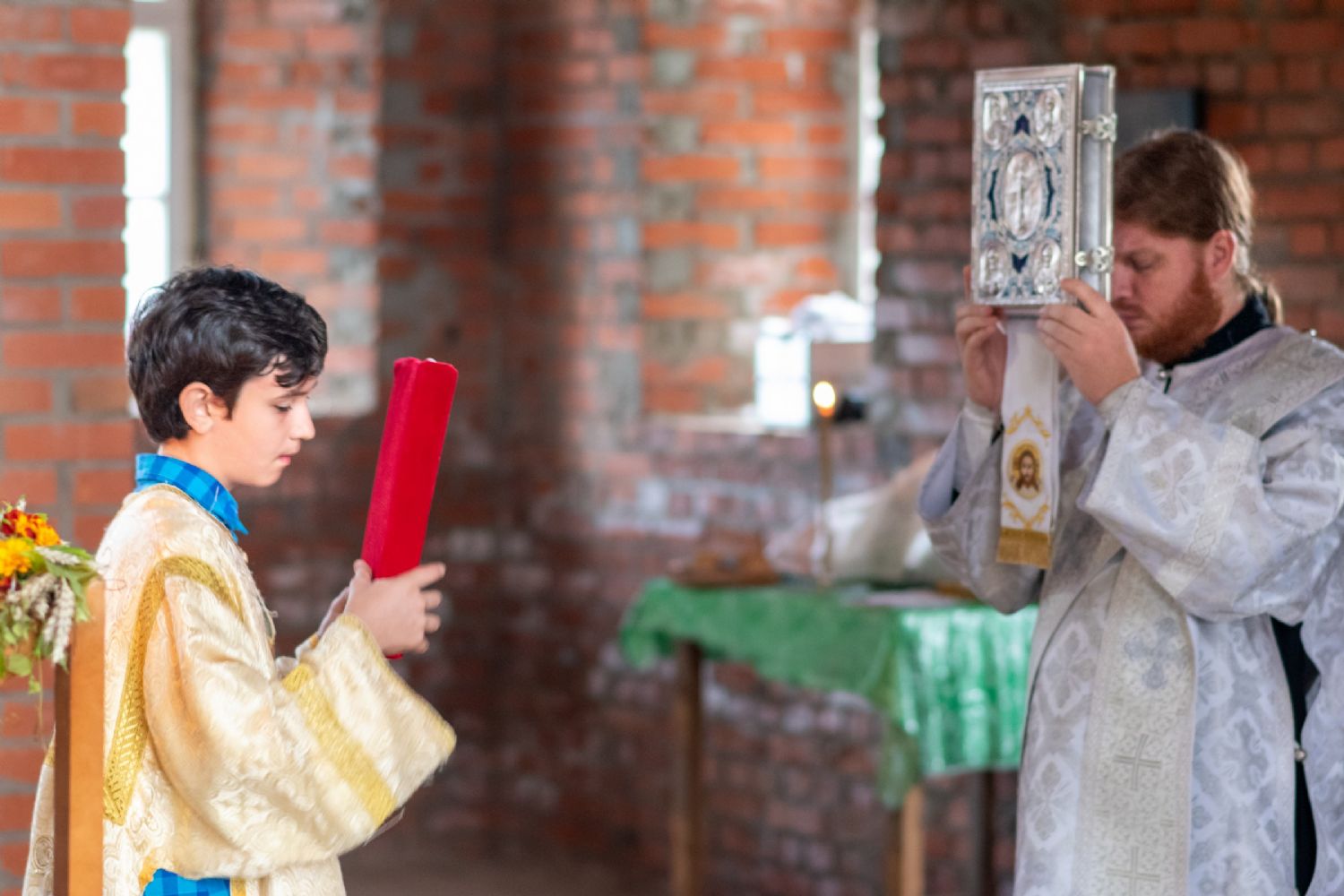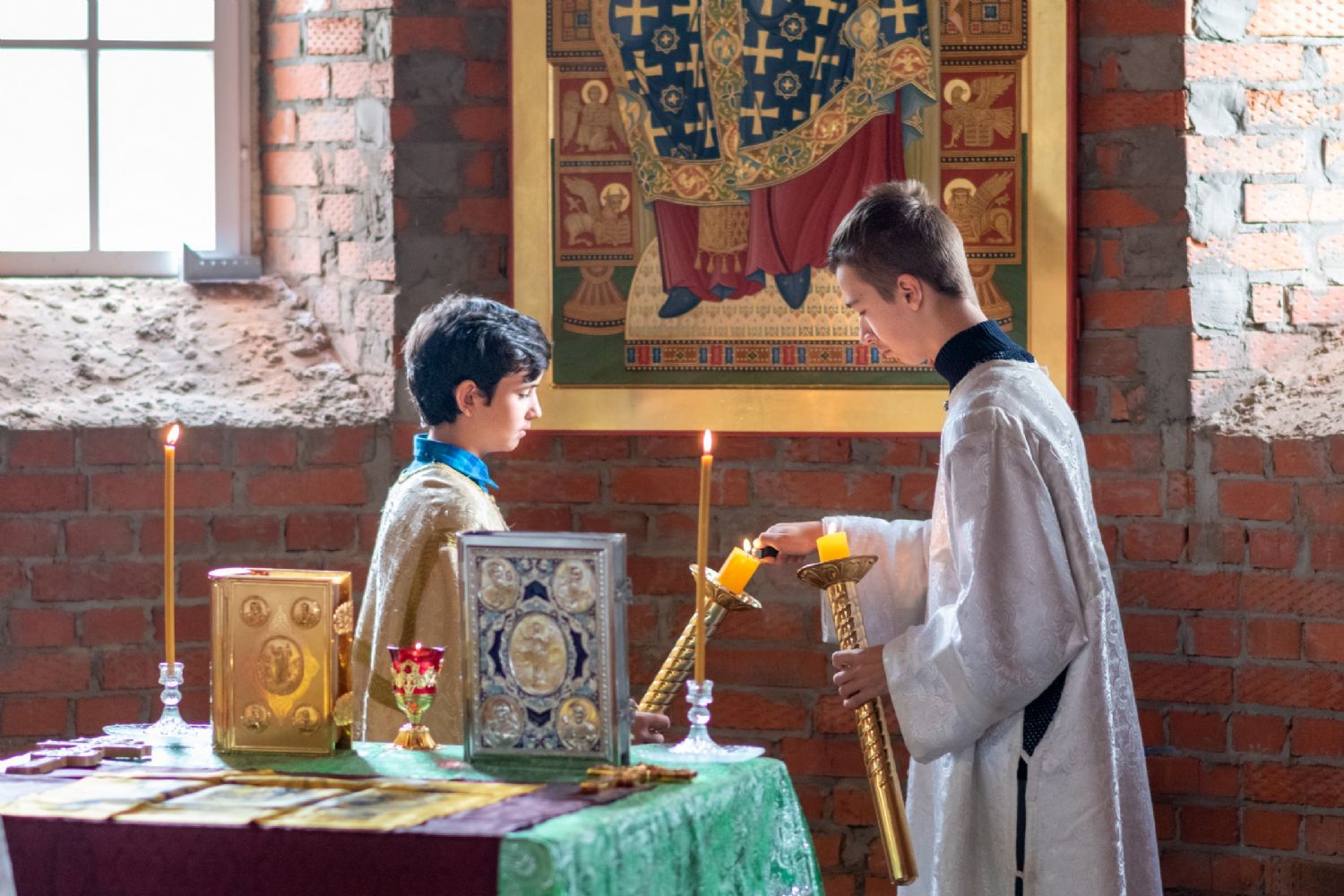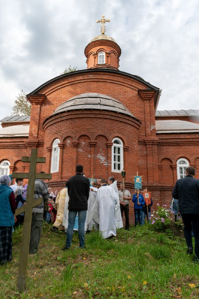 После Литургии прошел Крестный ход вокруг храма с кроплением святой водой и чтением Евангелия. Затем был отслужен молебен на начало учения отроков.