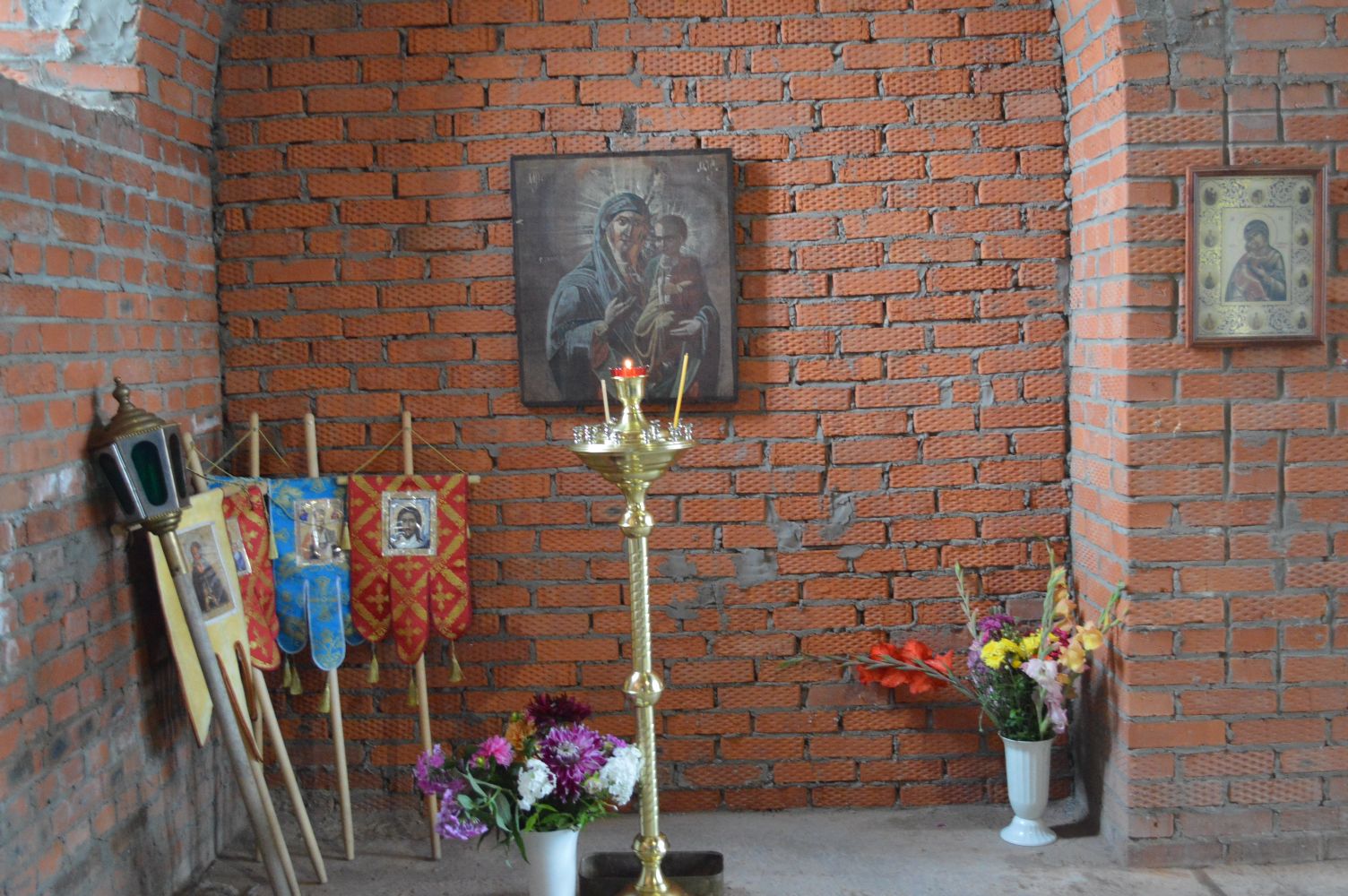 Сегодня, заходя в храм, мы видим на месте приделов небольшие иконы Георгия Победоносца и Пресвятой Богородицы. Отрадно видеть, что вновь храм полон прихожан и здесь звучит молитвенное пение.