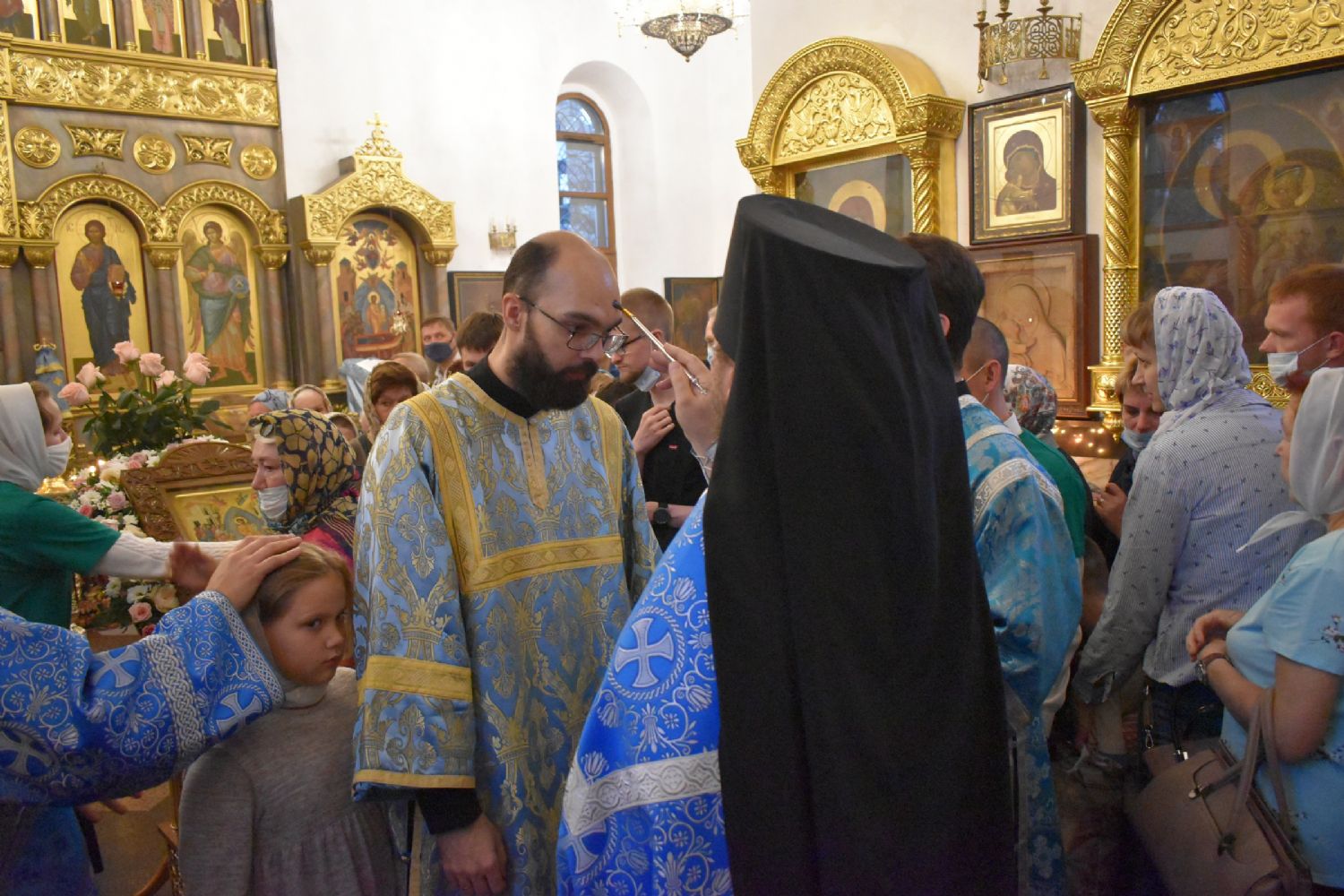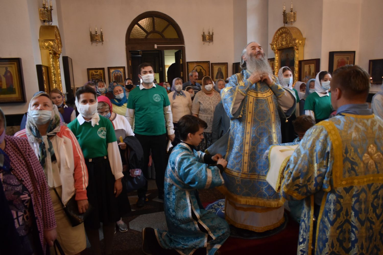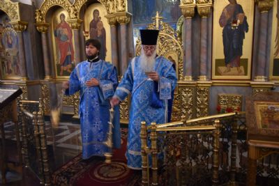 Владыке сослужили секретарь Йошкар-Олинского епархиального управления иеромонах Серафим (Пасанаев), клирики собора иерей Никифор Захаров, Артемий Промович, Евгений Самойлов, диакон Игорь Коваль и клирик храма Рождества Пресвятой Богородицы протодиакон Михаил Козловский. Песнопения исполнял хор под руководством регента Надежды Поздеевой.