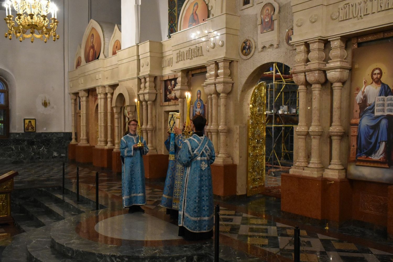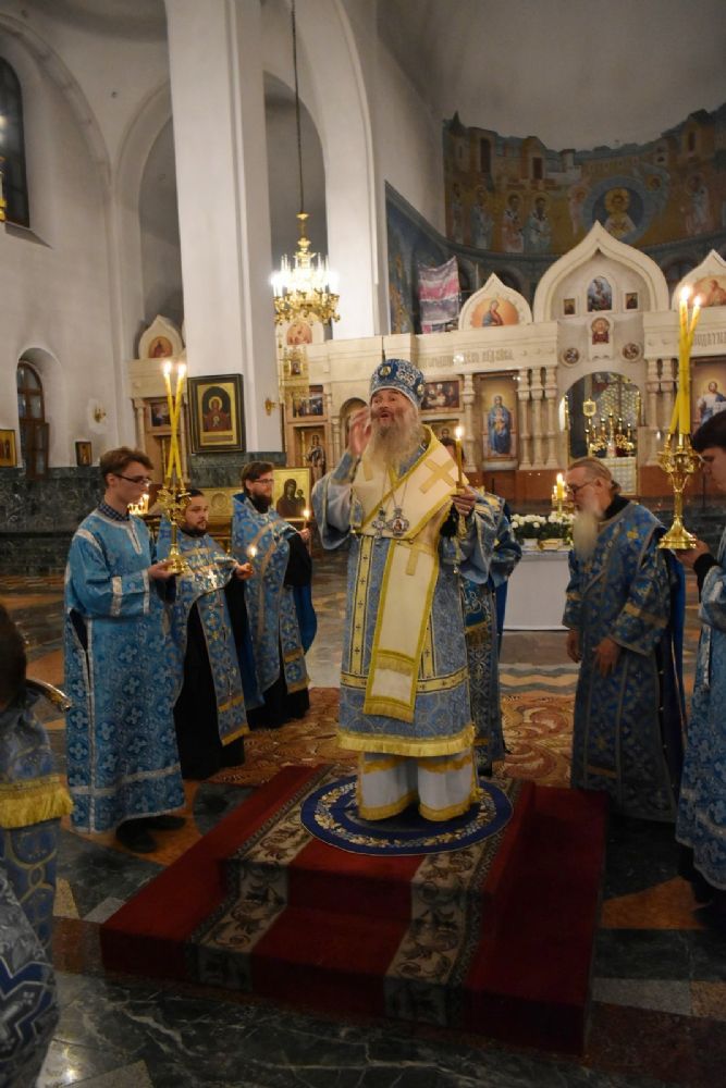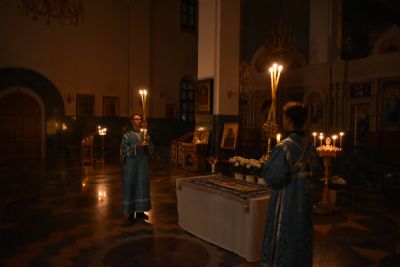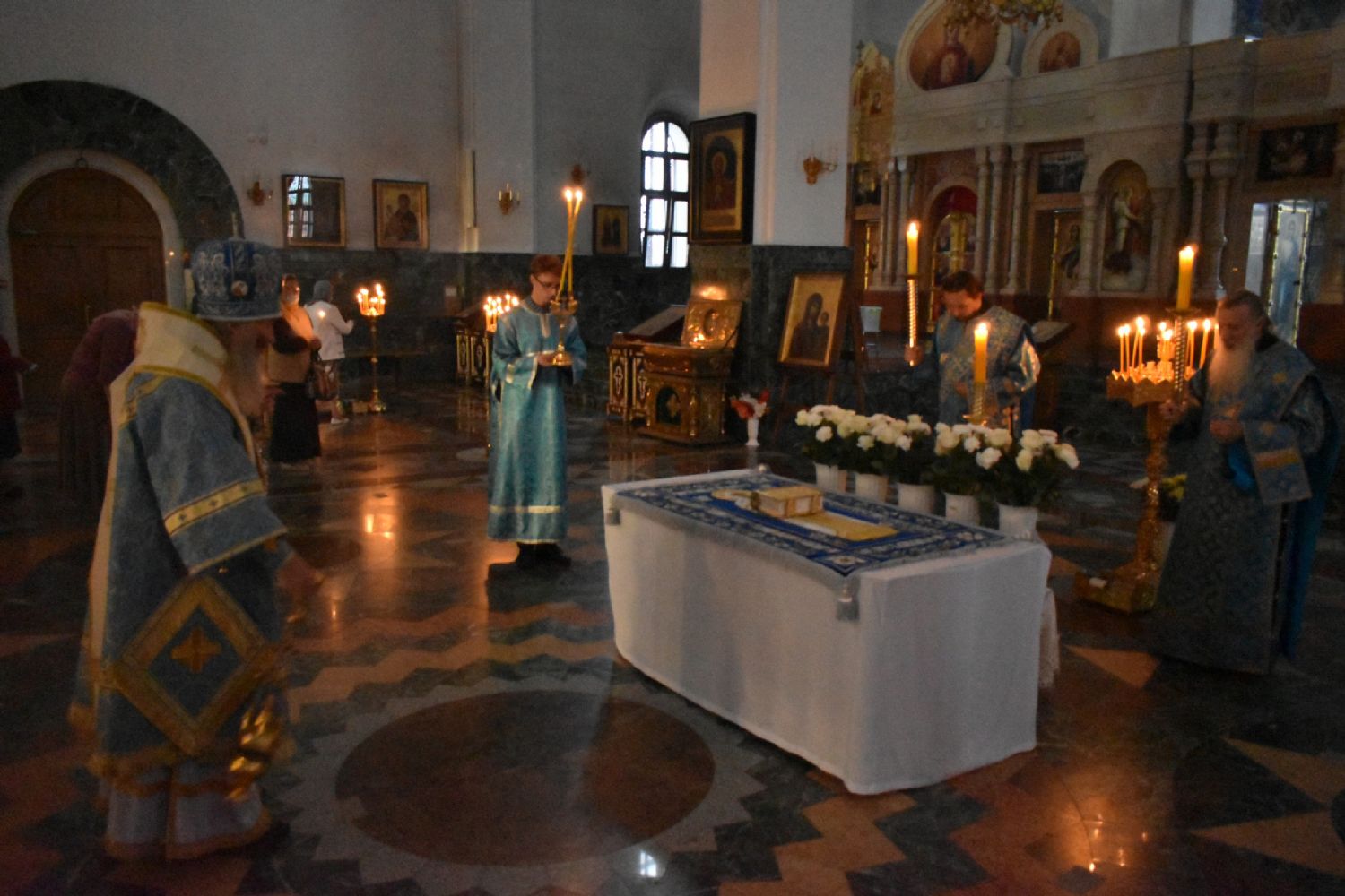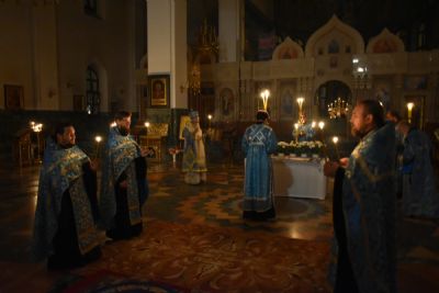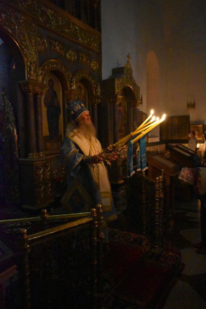 29 августа вечером митрополит Иоанн возглавил всенощное бдение с чином погребения Пресвятой Богородицы в Благовещенском кафедральном соборе.
