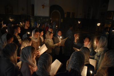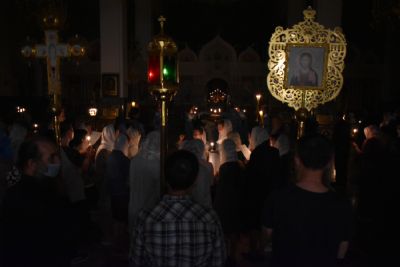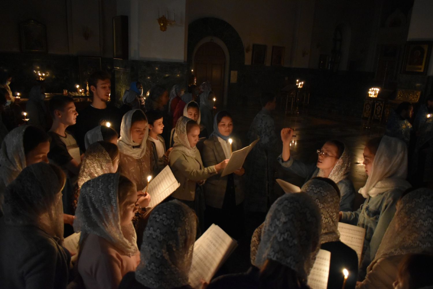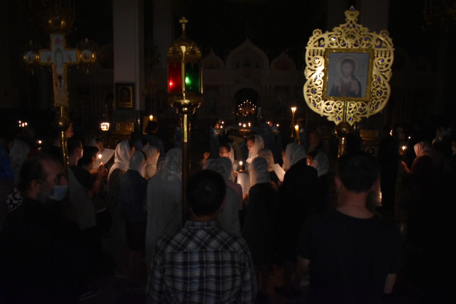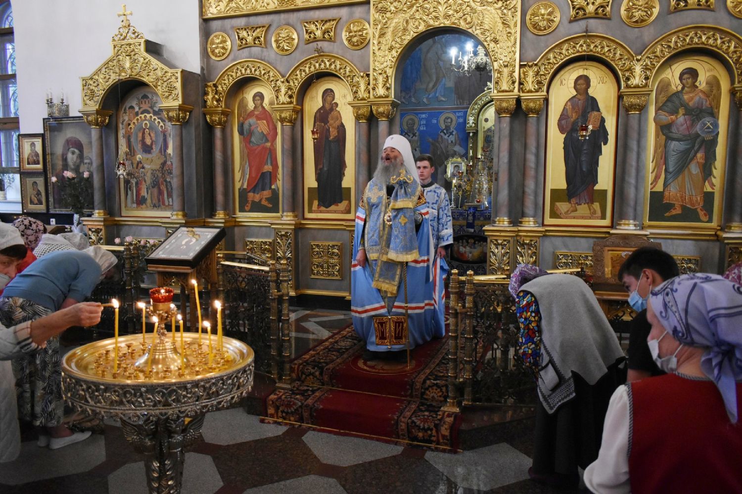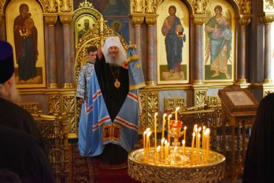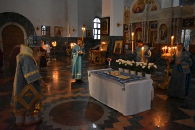 29 августа вечером митрополит Иоанн возглавил всенощное бдение с чином погребения Пресвятой Богородицы в Благовещенском кафедральном соборе.