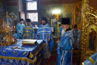 Его Высокопреосвященству сослужили секретарь Йошкар-Олинского епархиального управления иеромонах Серафим (Пасанаев), настоятель храма митрофорный протоиерей Сергий Филонов, клирики храма иереи Алексий Михеев, Никита Иванов, Александр Староверов, диакон Александр Мельников и клирик храма Рождества Пресвятой Богородицы с. Семеновка протодиакон Михаил Козловский. Песнопения исполнял хор храма.