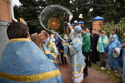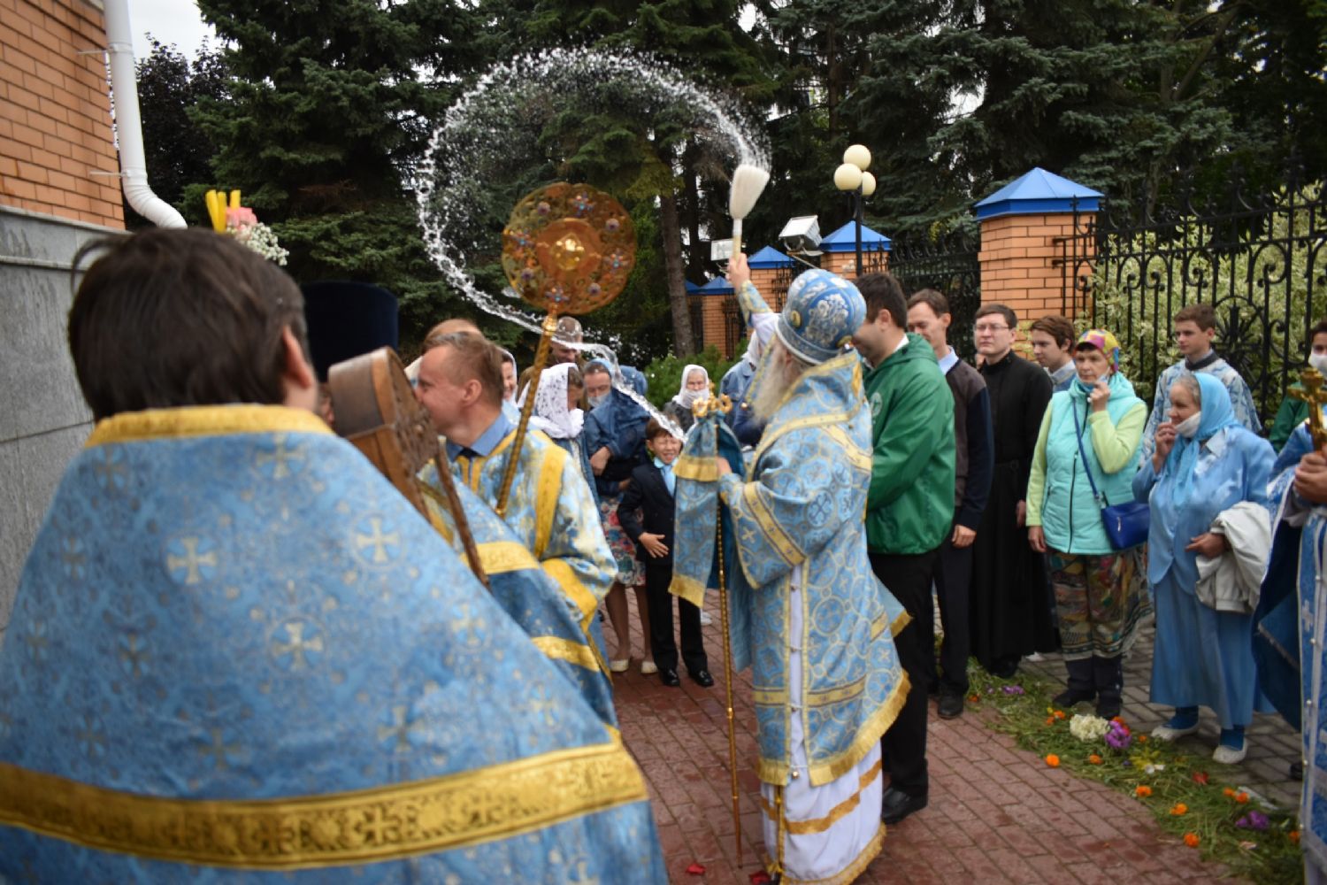 После Литургии прошел крестный ход вокруг храма с кроплением святой водой и чтением Евангелия. Затем Владыка обратился с проповедью к собравшимся: