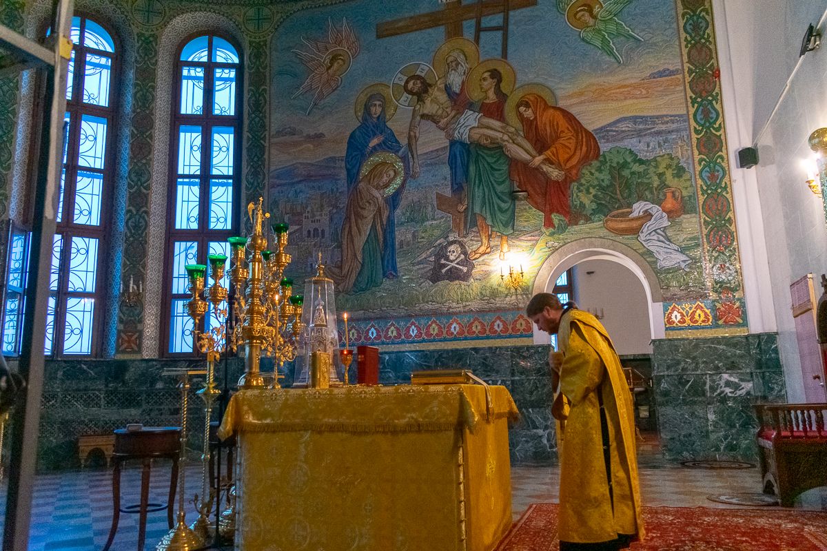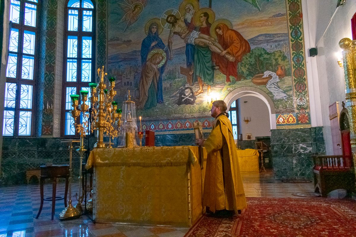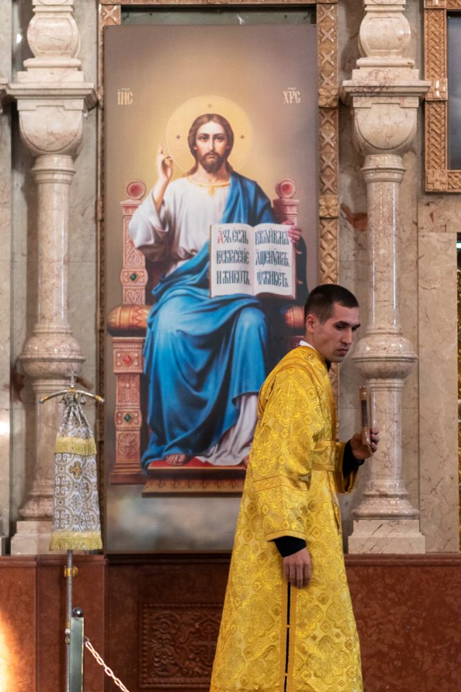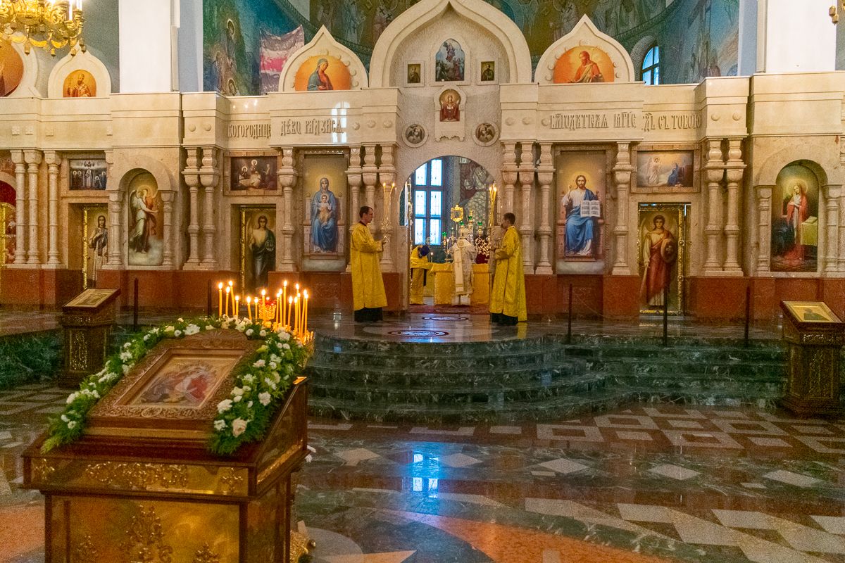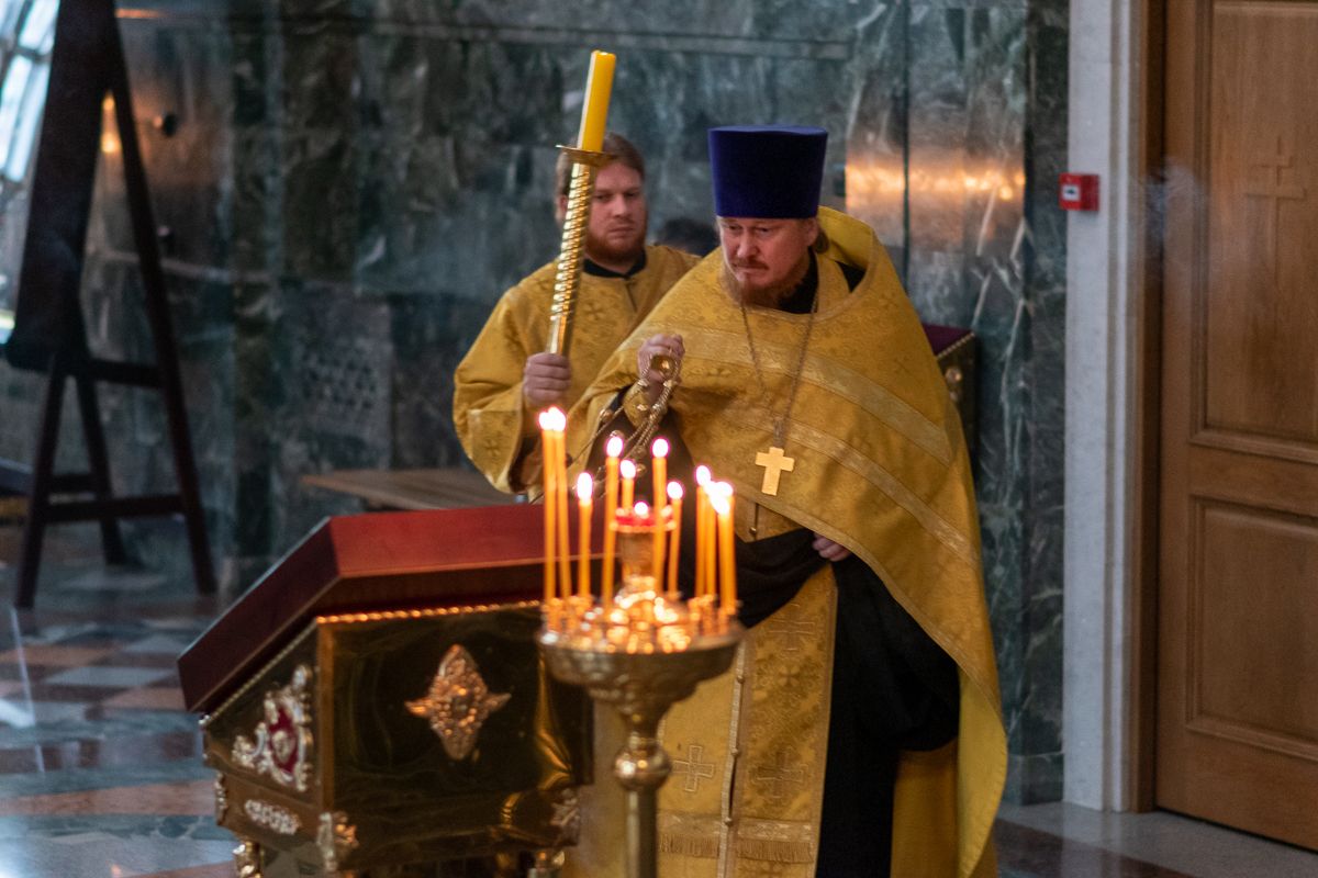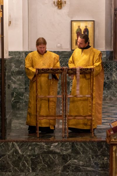 Архипастырю сослужили ключарь собора протоиерей Сергий Поглазов, клирики собора иереи Никифор Захаров, Евгений Самойлов, диаконы Андрей Дружинин, Игорь Коваль и клирик храма Рождества Пресвятой Богородицы протодиакон Михаил Козловский. Пел хор под руководством регента Надежды Поздеевой. За богослужением помогали Православные добровольцы.